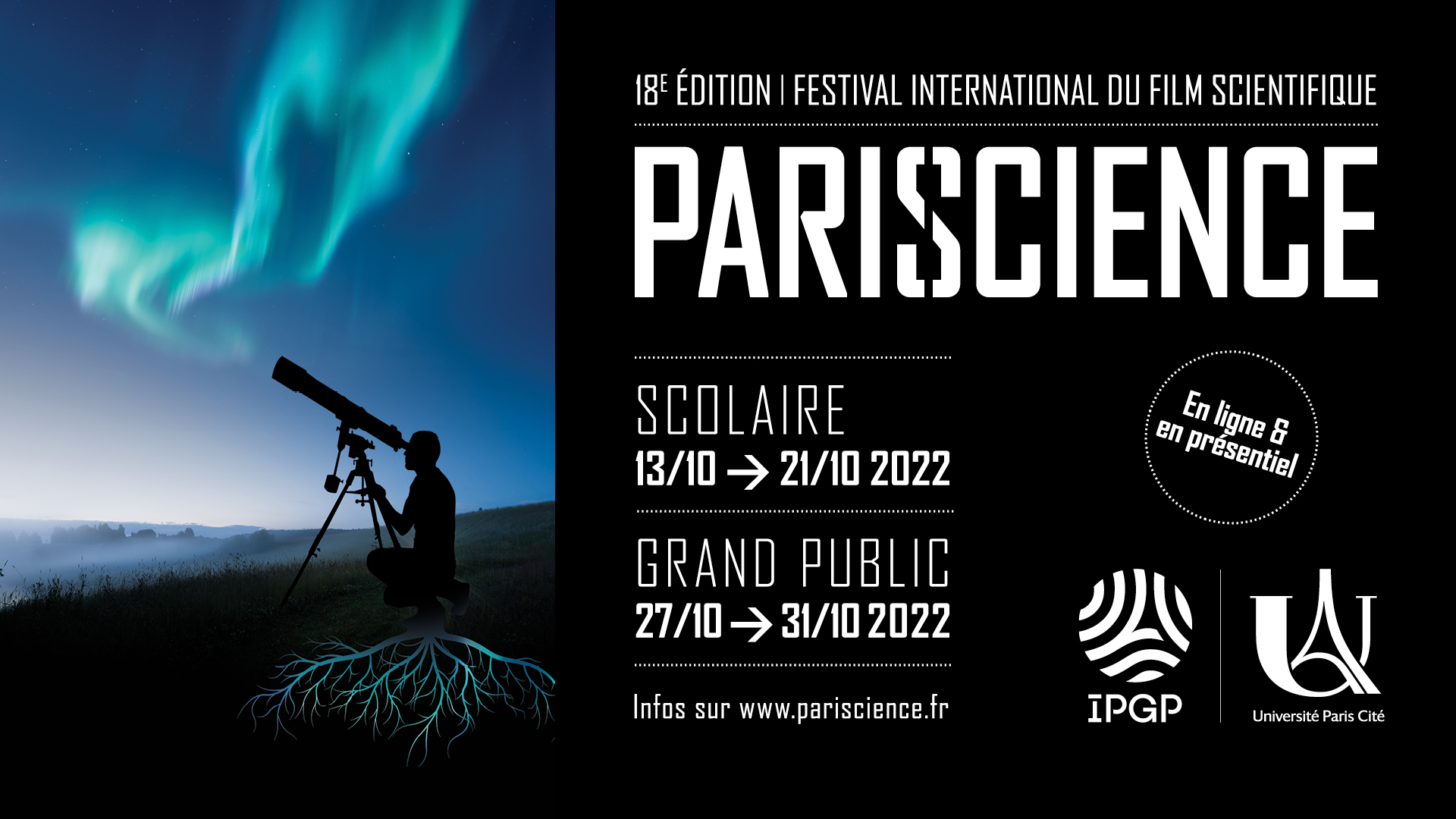 Rendez-vous incontournable des passionnés de sciences et d’images, le festival international du film scientifique Pariscience, organisé par l’AST (association Science&Télévision) projette gratuitement une sélection du meilleur de la production française et internationale récente de documentaires scientifiques, dans toutes les durées, tous les formats, pour tous les publics et sur tous les sujets. L’édition scolaire se déroulera du 13 au 21 octobre à l’IPGP et l’édition grand public du 27 au 31 octobre à l’IPGP, au MNHN et en ligne.