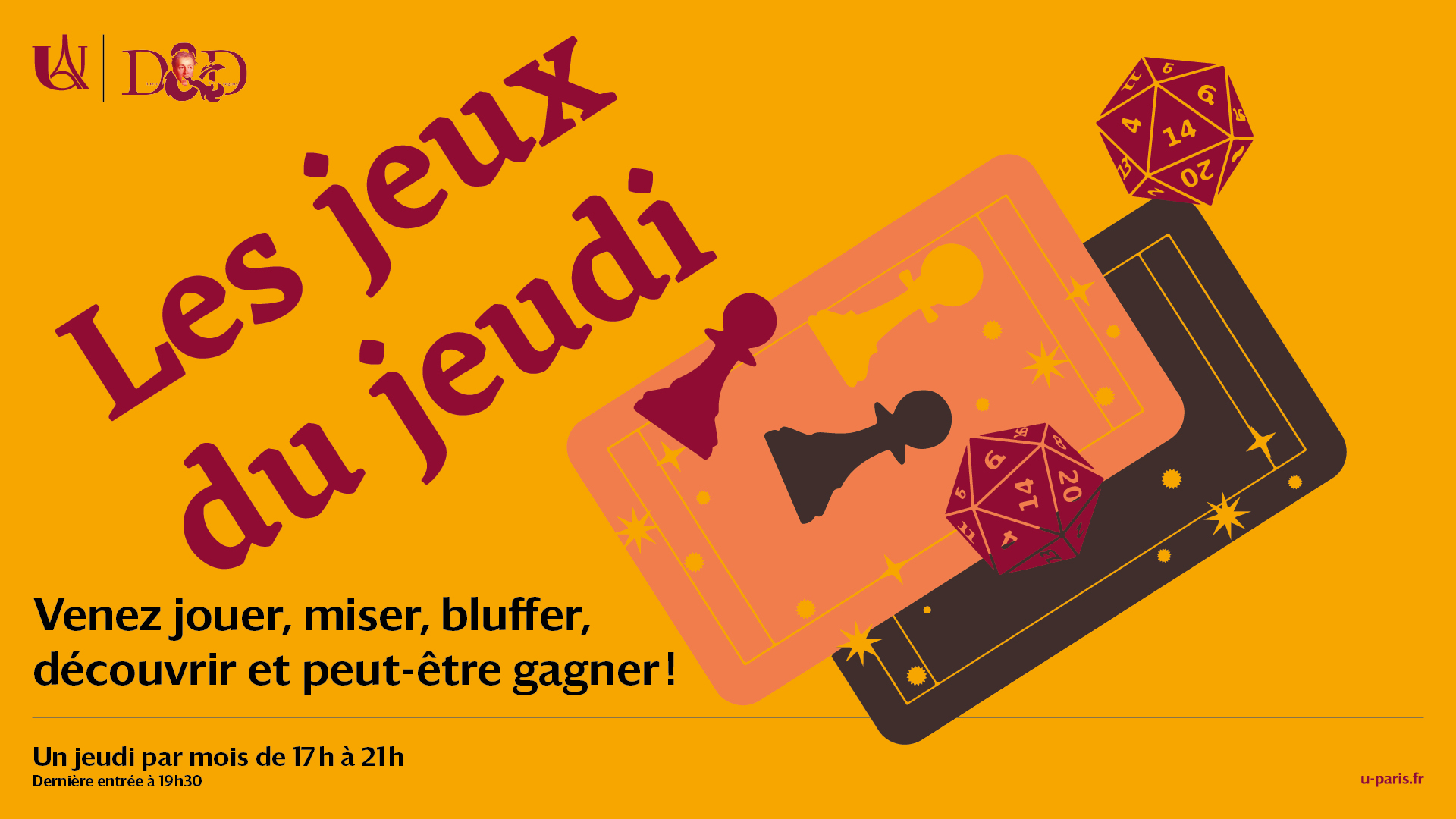 Une fois par mois, l’association Diderot & Dragons organise des soirées jeux à la BU des Grands Moulins : prochaine et dernière soirée de cette année universitaire le jeudi 25 mai !