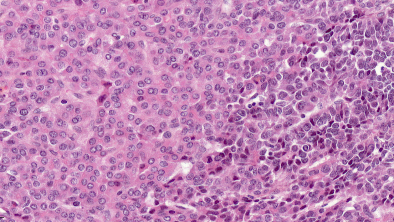 Diversité de cellules au sein d’une même tumeur. Visualisation au microscope (avec une coloration à l’hématoxyline et à l’éosine) pour des hépatoblastomes, inclus dans l’étude.