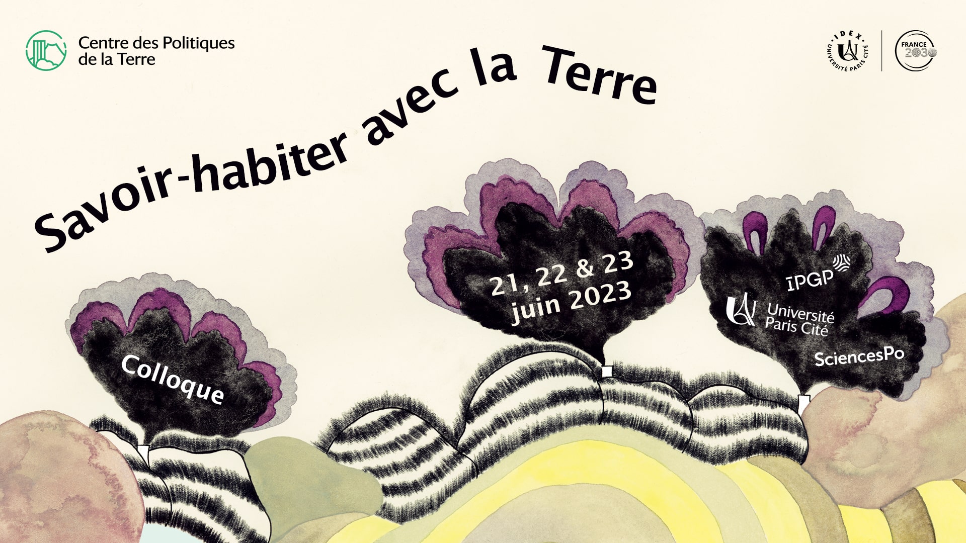Pour conclure son cycle 2022/2023 de séminaires autour des hybridations plurielles de l’« habitabilité », le Centre des Politiques de la Terre a organisé les 21, 22 et 23 juin 2023 un colloque entremêlant jeunes chercheur.se.s et chercheur.se.s confirmé.e.s – issu.e.s des sciences naturelles et expérimentales, des sciences sociales et humaines & des sciences de la santé – ainsi que des acteur.trice.s public.que.s, des militant.e.s et des artistes. Ce colloque aboutira sur la publication d’un ouvrage collectif.
