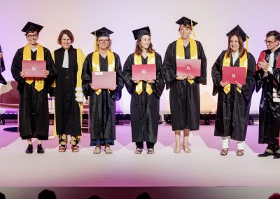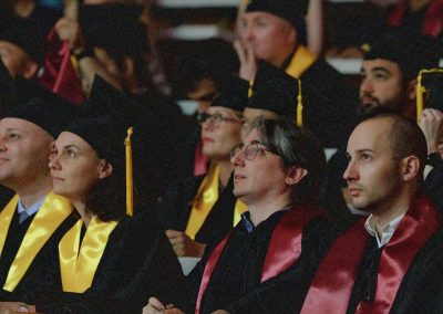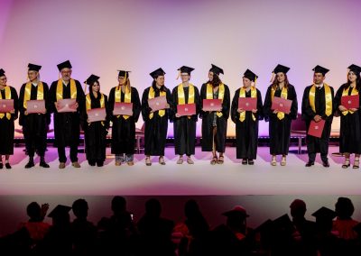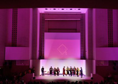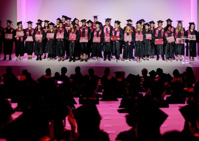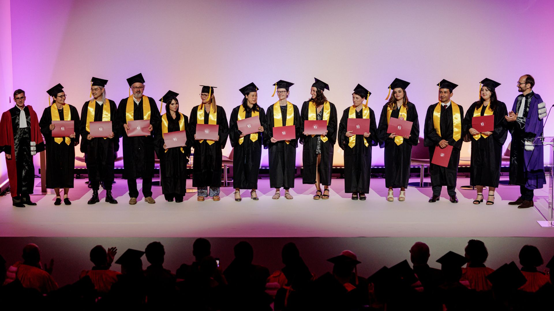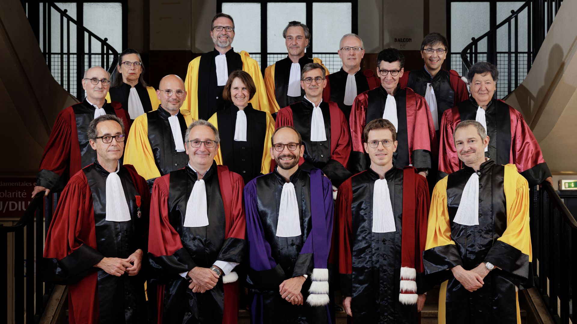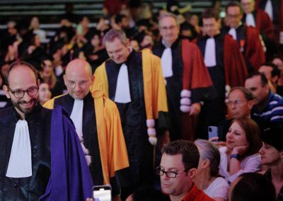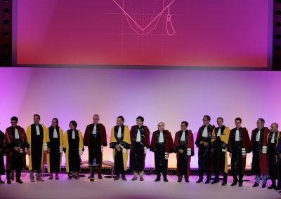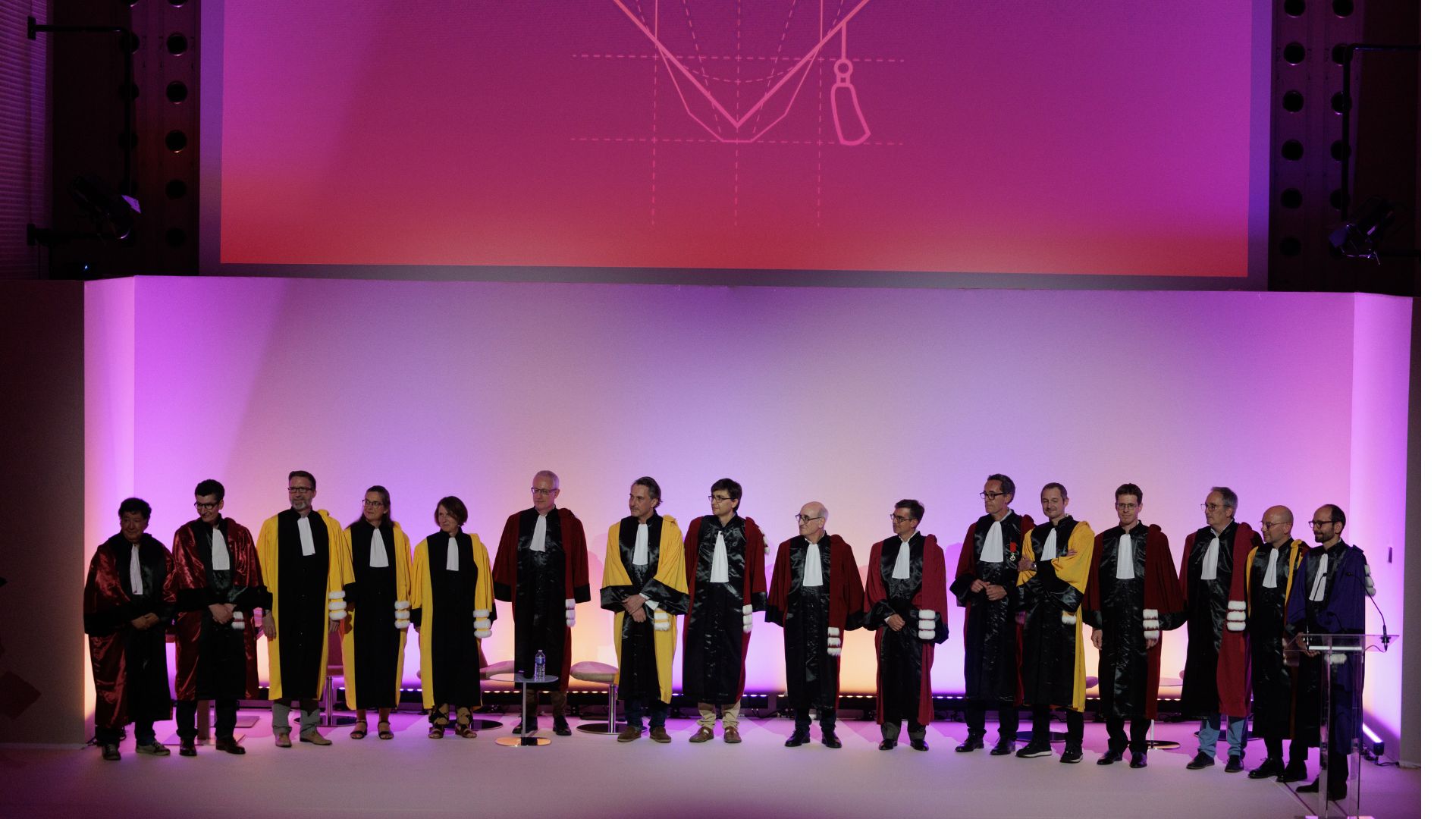 Chacune et chacun s’est vu remettre son diplôme sur scène des mains du Président en compagnie des directrices et directeurs d’écoles doctorales.