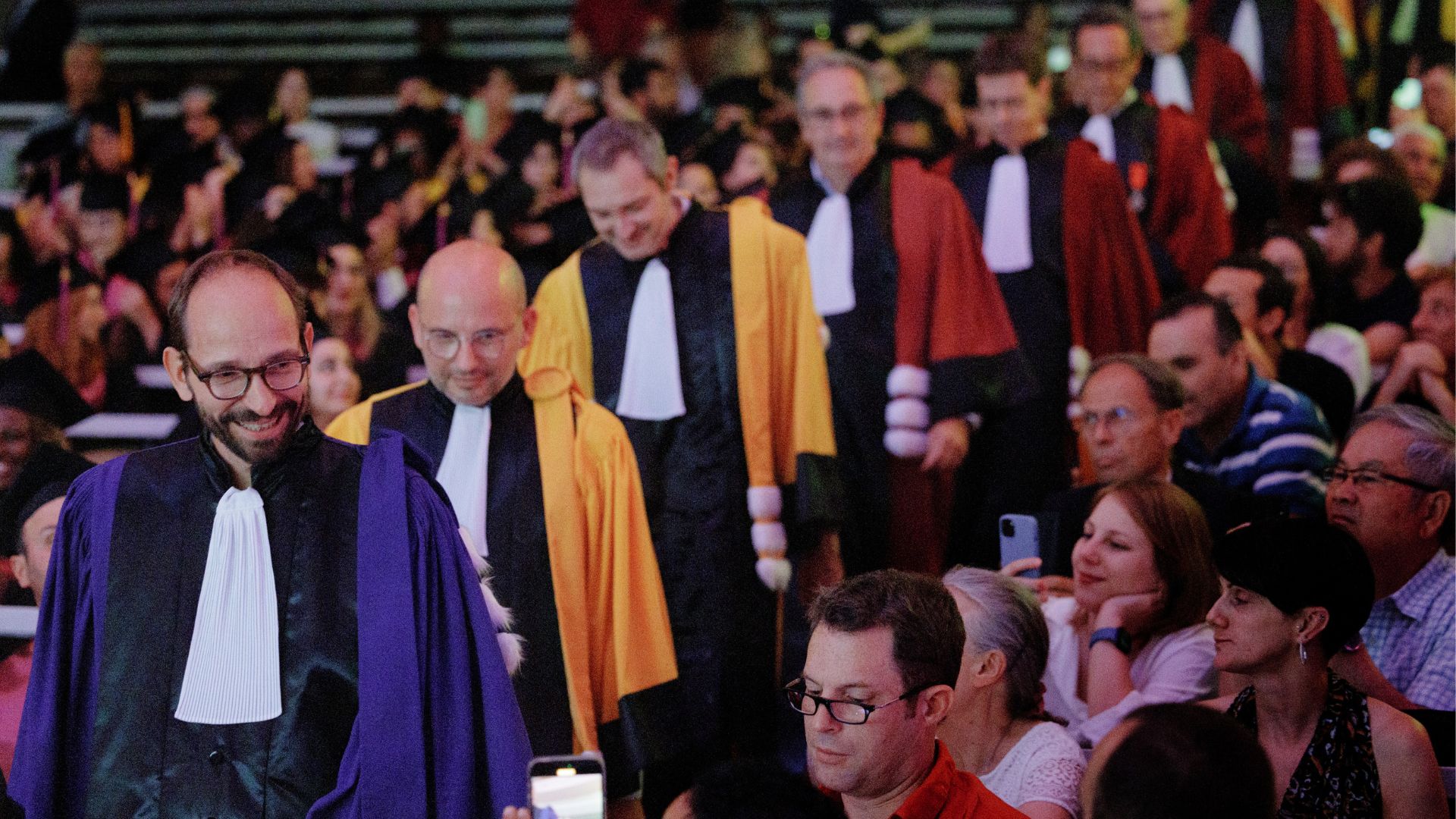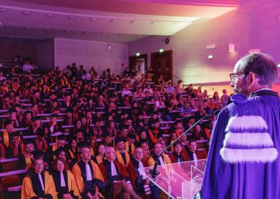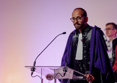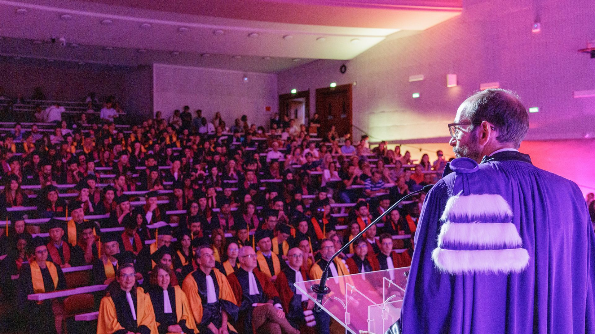 Dans leurs discours d’ouverture, Édouard Kaminski, Président d’Université Paris Cité et Raphaël Porcher, directeur du collège des écoles doctorales ont félicité chaleureusement les 200 diplômés présents pour leurs travaux de recherche qui participent de notre ambition d’illuminer le monde de demain.