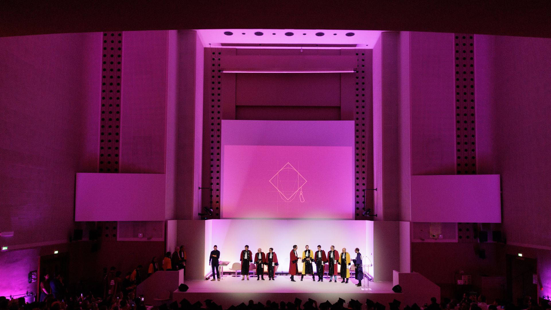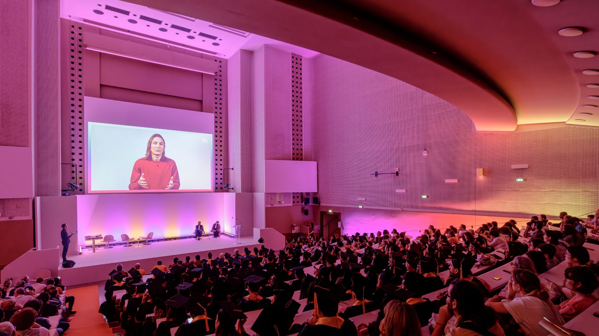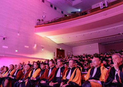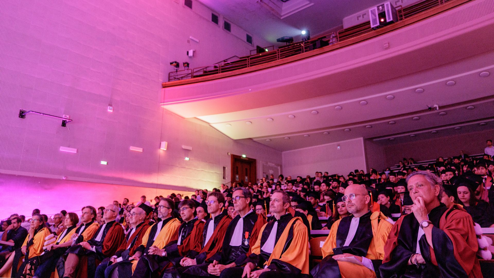 Dans leurs discours d’ouverture, Édouard Kaminski, Président d’Université Paris Cité et Raphaël Porcher, directeur du collège des écoles doctorales ont félicité chaleureusement les 200 diplômés présents pour leurs travaux de recherche qui participent de notre ambition d’illuminer le monde de demain.