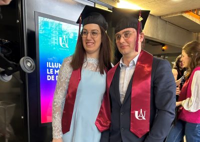 A l’issue des remises de diplômes qui se sont tenues dans 11 amphithéâtres de la Halle aux Farines, les diplômés ont immortalisé ce moment grâce à la photocabine présente sur le campus.