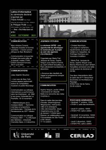 Lettres d’information de l’ENSAPVS Cerilac Retrouvez ci-dessous les lettres d’information des membres de l’ENSAPVS rattachés au CERILAC Lettre année 2021-2022 Lettre d’information n°2 Lettre année 2020-2021 Lettre d’information Architecture n°1
