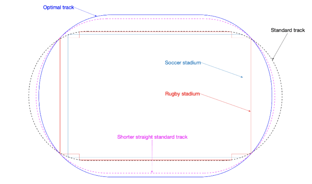 Actuellement, il existe trois types de pistes certifiées par les fédérations d’athlétisme : la piste standard, constituée de deux lignes droites de 84,3 mètres et de deux demi-cercles de 36,5 mètres de rayon, et deux types de pistes à anses de panier. Il est communément admis dans la communauté sportive que la piste standard permet les meilleures performances et qu’il est quasiment impossible de battre un record sur une piste à anses de panier. Conçue pour inclure un stade de football ou de rugby, ce type de piste possède des virages avec une courbure plus grande, la force centrifuge y est donc plus importante, notamment dans les lignes intérieures. Les stades multisports ne sont donc pas adaptés pour établir de nouveaux records sportifs et ils représentent un net désavantage pour les coureurs dans certains couloirs.