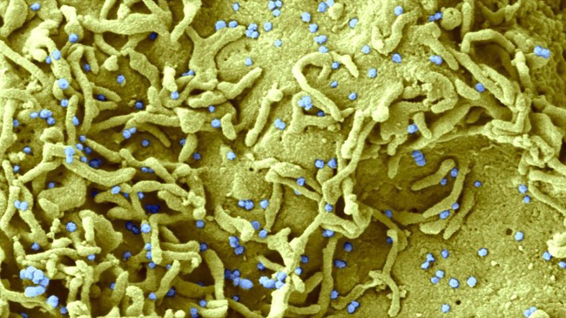 Microscopie électronique d’une cellule infectée par le SARS-CoV-2