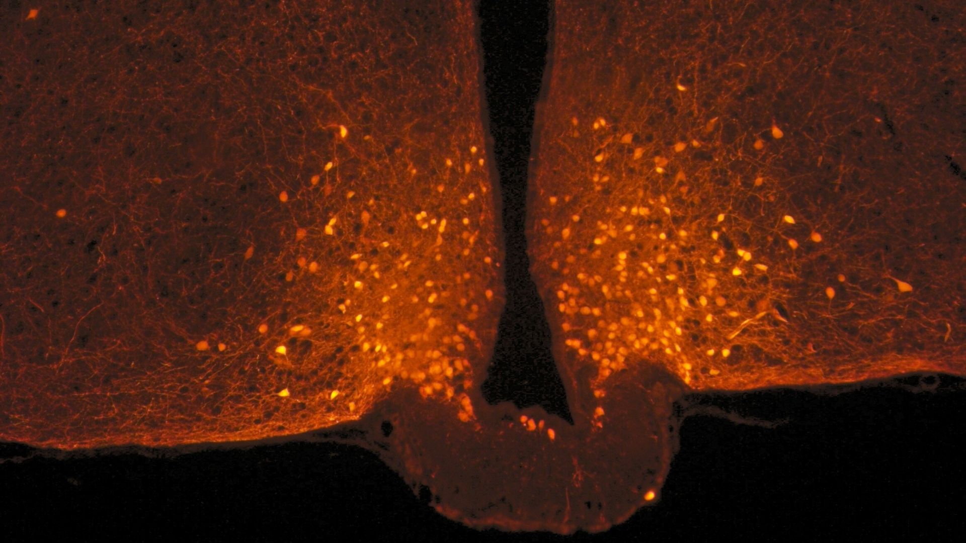 Les chercheurs ont étudié les neurones POMC situés dans l’hypothalamus, à la base du cerveau, connus pour leur capacité à limiter la prise alimentaire. Concrètement, ces neurones sont recouverts par des cellules nerveuses – les astrocytes – qui servent en quelque sorte de plaquettes de frein.