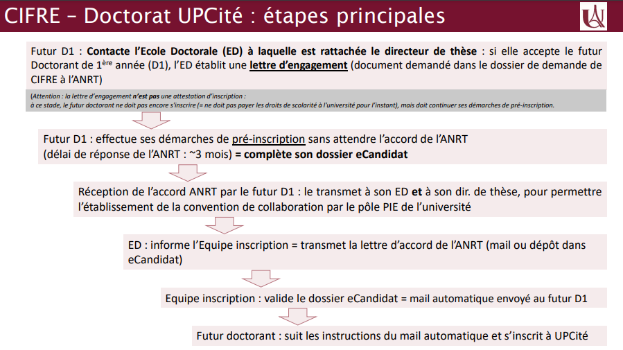 CIFRE – inscription en Doctorat à UPCité : étapes principales