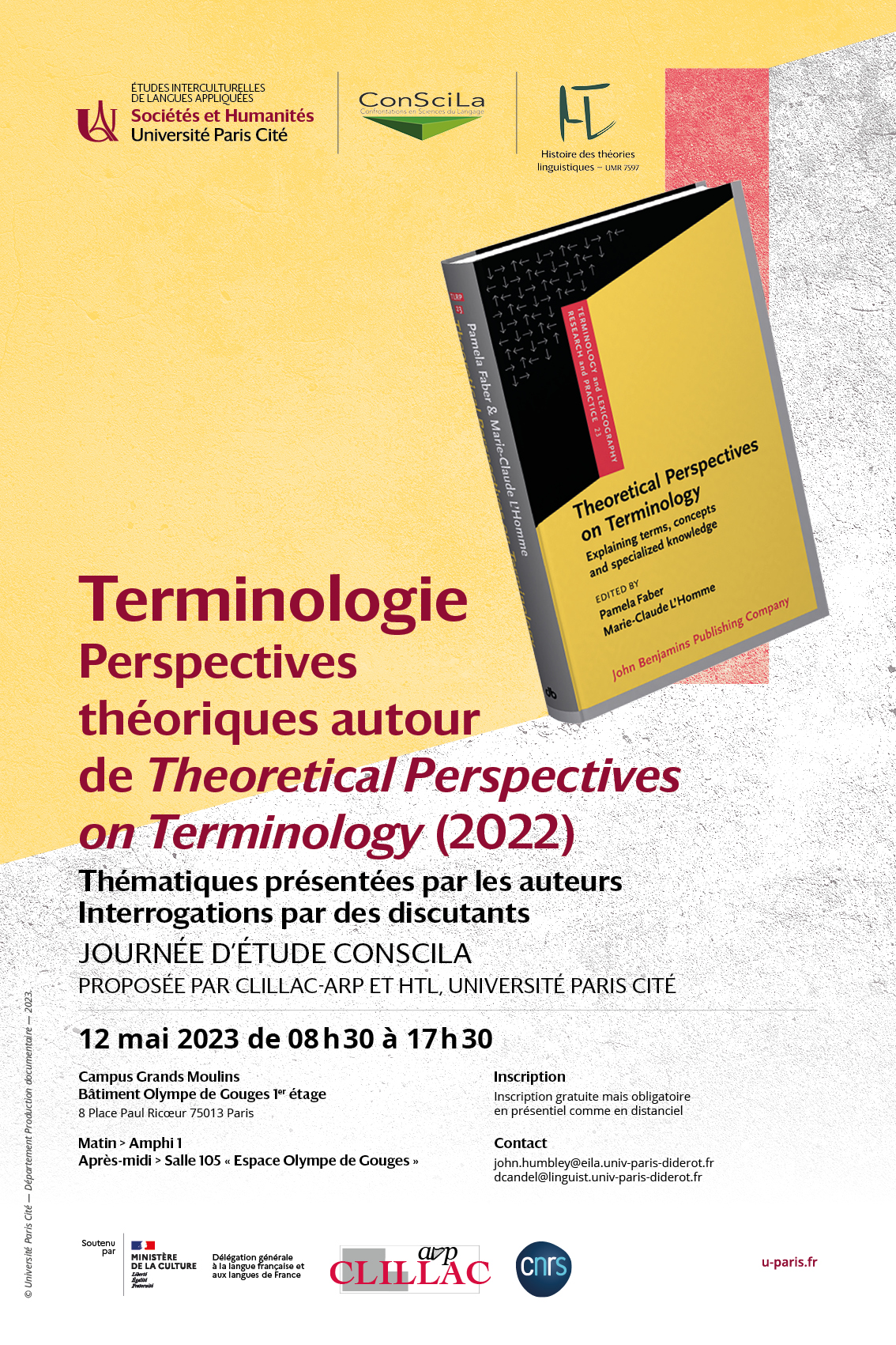 « Perspectives théoriques autour de ‘Theoretical Perspectives on Terminology'(Benjamins 2022) ». Thématiques présentées par les auteurs, Interrogations par des discutants.