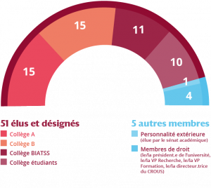 Le sénat académique est composé de 56 membres :