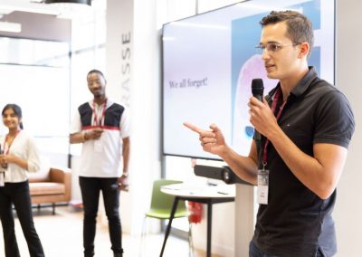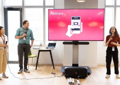 After tackling six challenges in the field of e-health, the teams met and exchanged ideas during a creative brainstorming session. A group of facilitators challenged them and stimulated their ideation. The following day was characterised by interventions and sessions to boost their creativity by helping them build an innovative project. The teams met with mentors and business experts from industry, startups, research and health who provided their expertise. The final day consisted of coaching sessions to help the teams prepare the deliverables and the delivery of their presentations. On the closing day, each team presented their project to a panel of experts, who after deliberations named three winning teams.