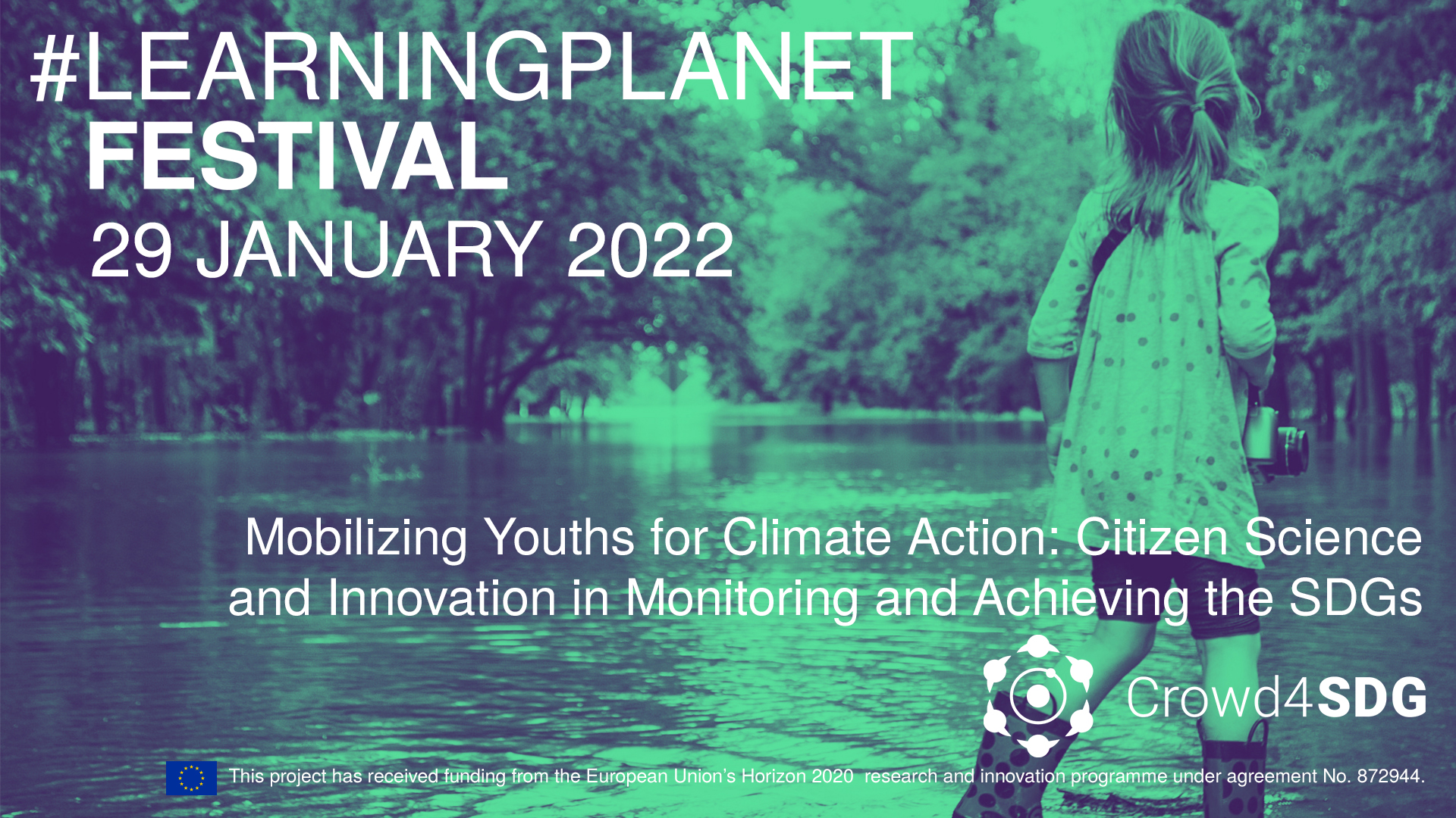 As part of the #LearningPlanet Festival, the European research project, Crowd4SDG hosted an online interactive workshop on January 29th called “Mobilizing Youths for Climate Action: Citizen Science and Innovation in Monitoring and Achieving the SDGs”.