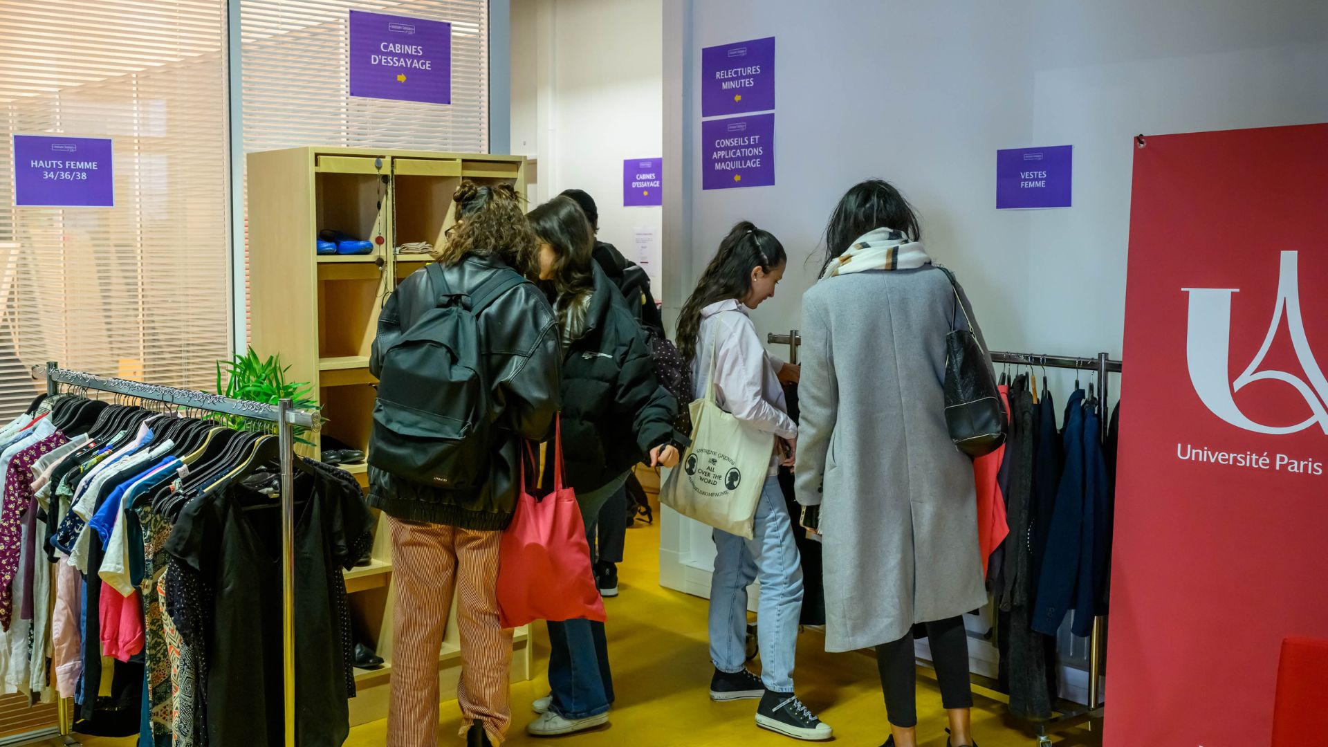 On April 5th and 6th, 390 students from Université Paris Cité gathered at the Grands Moulins campus. They were looking for clothing suitable in a professional context. The students also had the opportunity to work on their self-confidence, needed during a job interview.