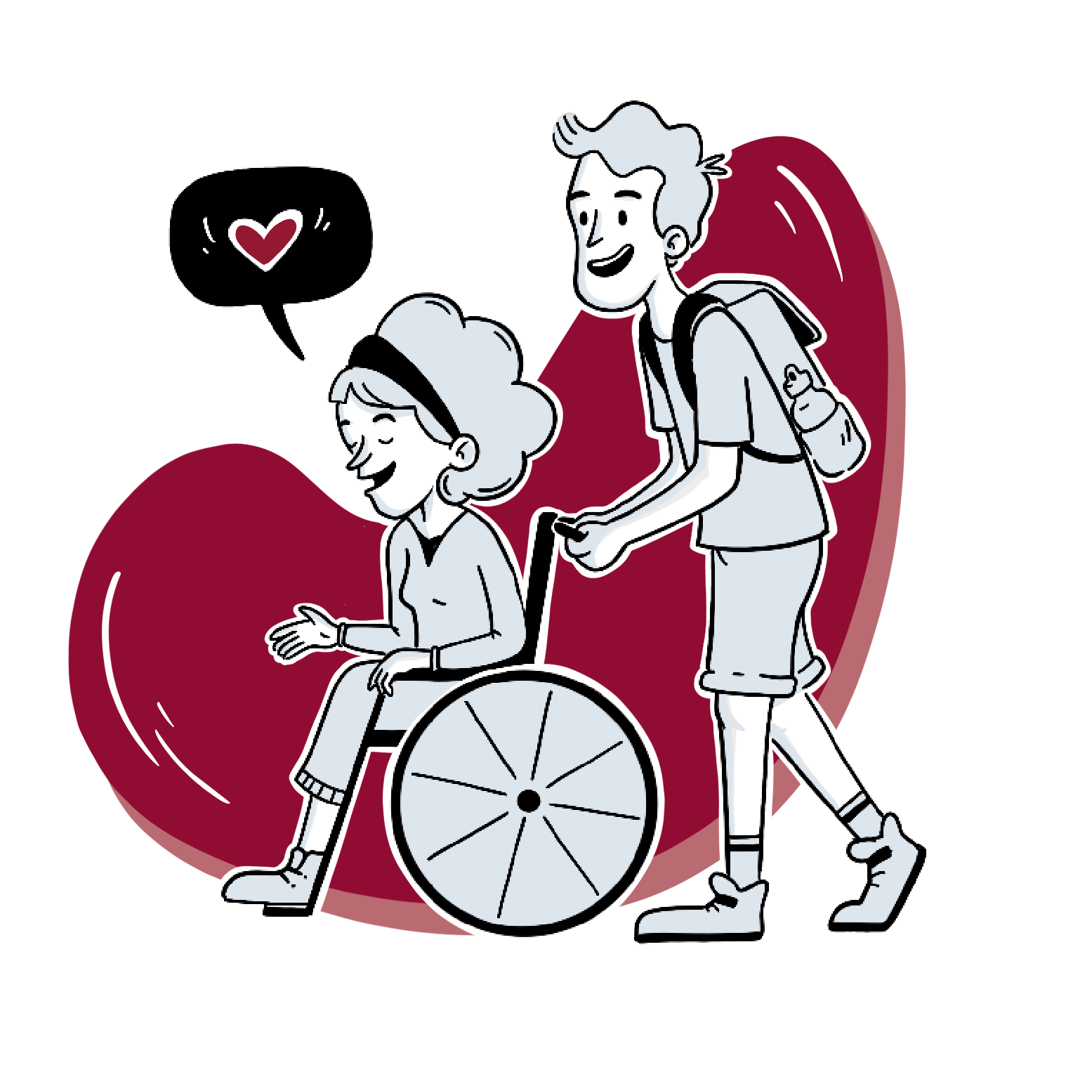 Lucas aide sa sœur, qu’il a toujours connu en situation de handicap. Il l’écoute souvent parler de ses inquiétudes, essaie de la rassurer. Il l’aide à se déplacer et à manger quand elle est trop fatiguée pour le faire elle-même. Pour lui, c’est naturel d’aider, même si ce n’est pas toujours facile. Il a choisi de s’inscrire dans une université près de sa famille, pour toujours pouvoir être là si sa sœur ou ses parents ont besoin de lui.