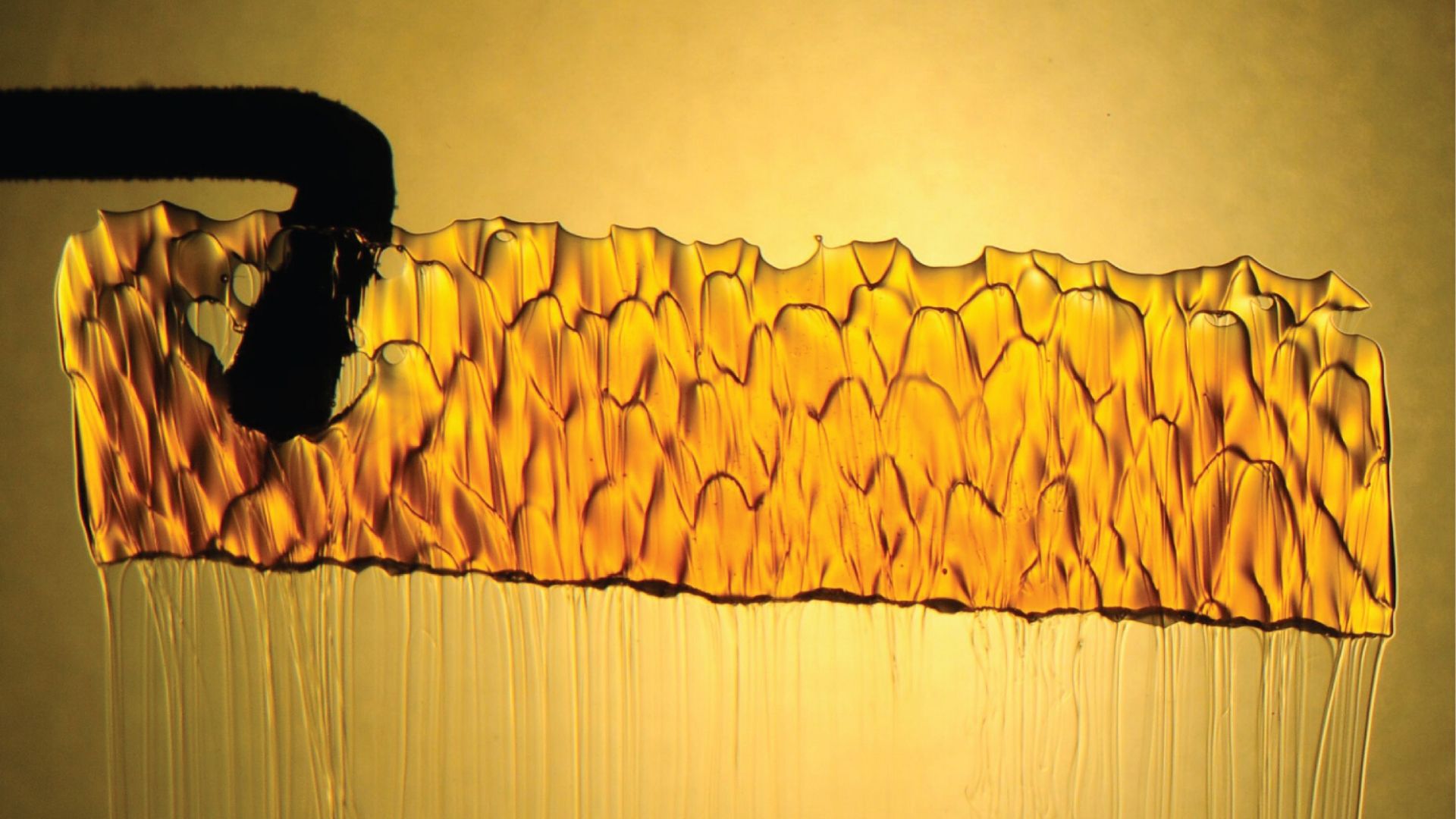 Dissolution d’un bloc de caramel plongé dans de l’eau. L’instabilité entre la diffusion et la gravité crée de petits panaches qui ont une distance caractéristique. L’étude permet de mieux comprendre les phénomènes d’érosion des roches et des icebergs.
