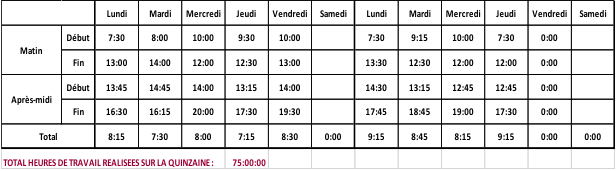 - Je choisis ma modulation horaire quotidienne de sorte à faire 75 heures dans la quinzaine :