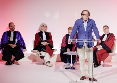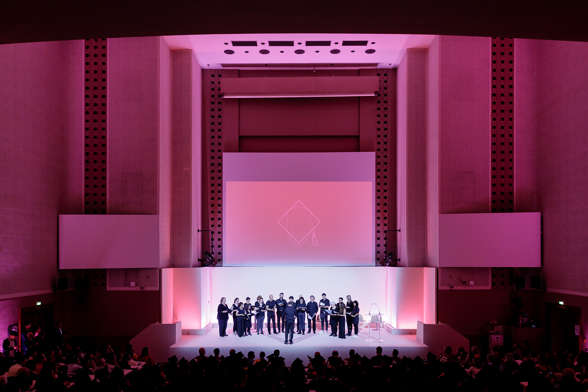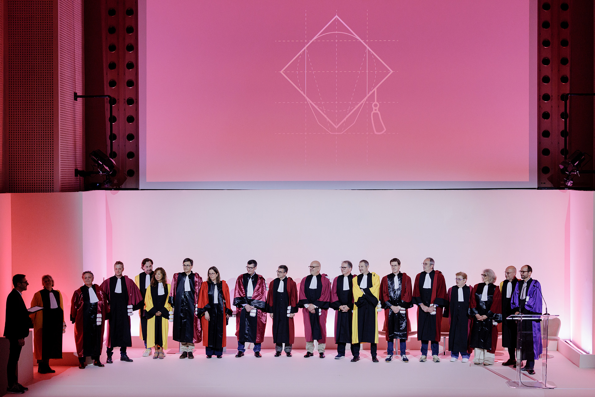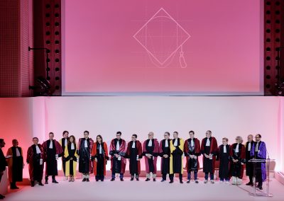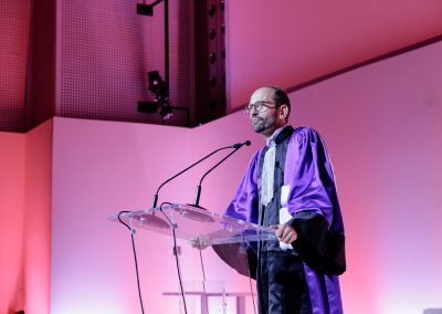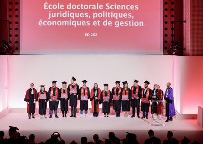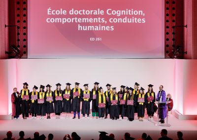 Les diplômés des 21 écoles doctorales de l’université ont reçu leur diplôme sur scène des mains du président, des vice-présidentes Recherche et Formation, et du directeur du collège des écoles doctorales. Gérard Friedlander, délégué général de la Fondation de l’université Paris Cité, a également présenté son activité au cours de la cérémonie.