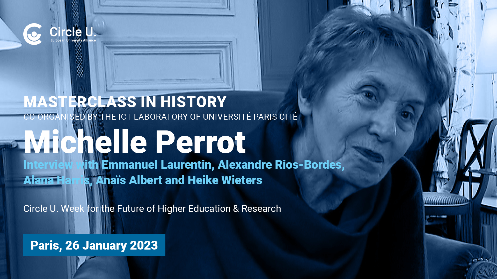 Le 26 janvier 2023, l’alliance européenne Circle U. et le laboratoire ICT – les Europes dans le monde vous invitent au Musée Carnavalet-Histoire de Paris à la première édition des Masterclasses Histoire avec l’historienne Michelle Perrot.