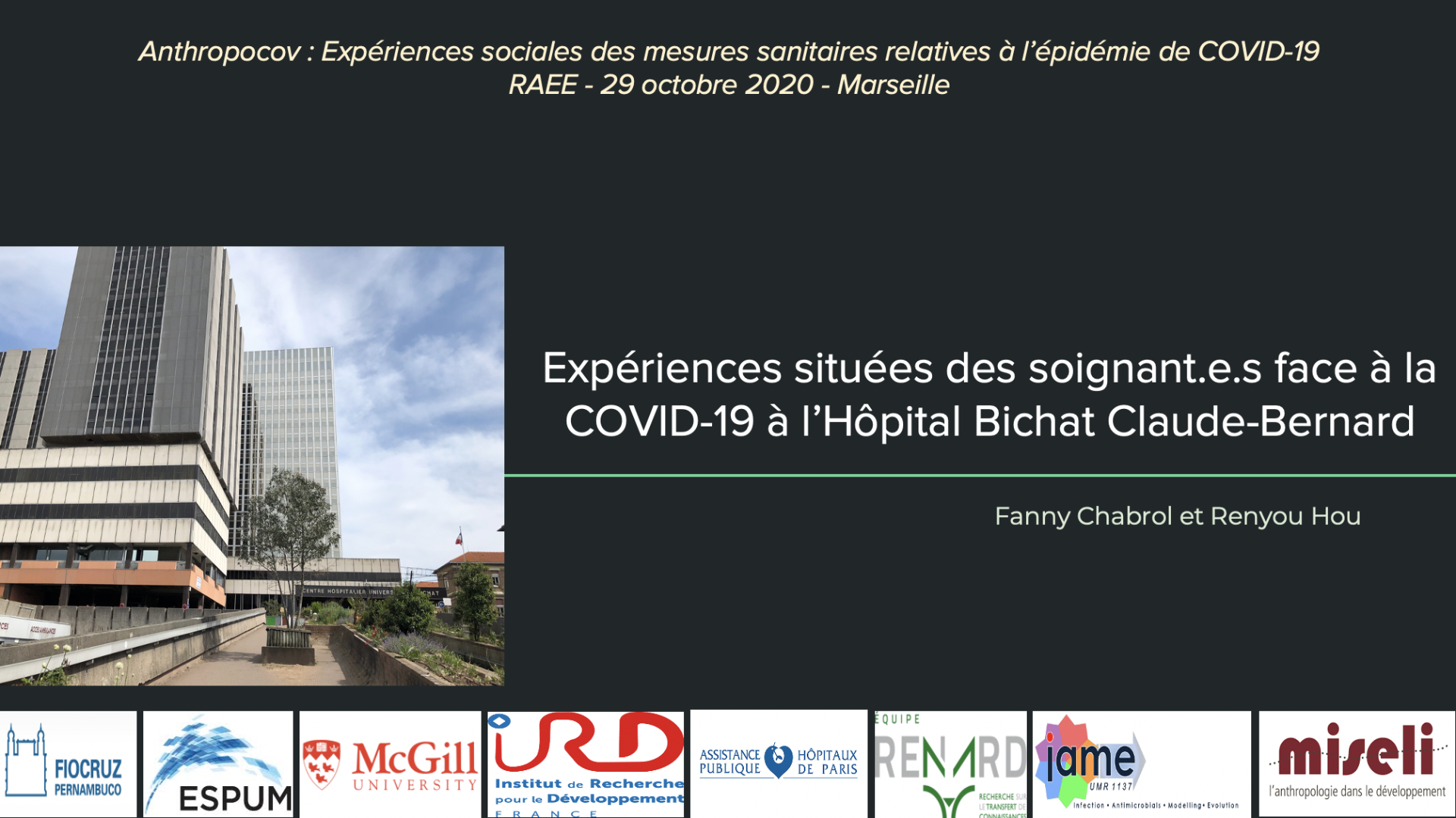 Retour sur la Journée scientifique « Anthropocov » organisée par le Réseau d’Anthropologie des Épidémies Émergentes (RAEE) le 29 octobre 2020 à Marseille. Cette journée avait pour objectif de présenter les résultats de plusieurs études relatives aux expériences sociales des mesures sanitaires mises en place pour faire face à l’épidémie de COVID-19. Des membres de l’équipe du projet HoSPiCOVID (équipe Paris, France) y ont présenté leurs premiers résultats de recherche.