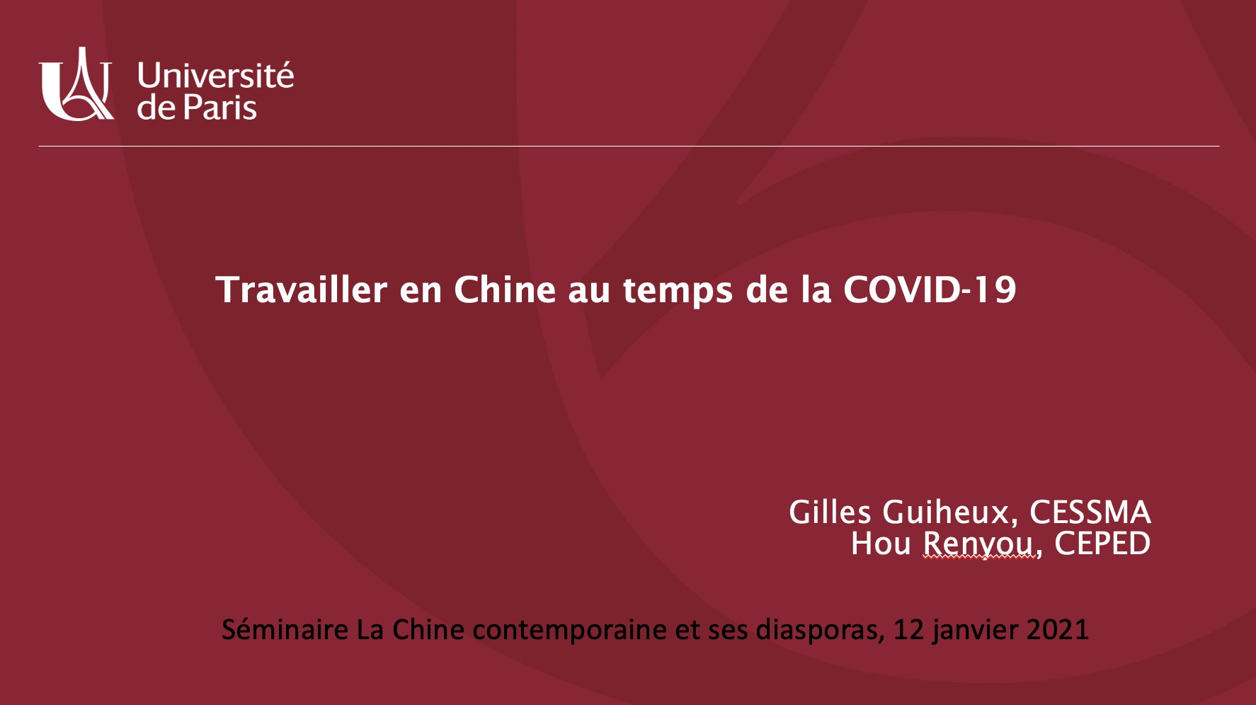 Dans le cadre du séminaire sur « La Chine contemporaine et ses diasporas » proposé par l’École des Hautes Études en Sciences Sociales (EHESS), revenons sur l’intervention « Travailler en Chine au temps de la COVID-19 » présentée, le 12 janvier 2021, par Renyou HOU et Gilles GUIHEUX.
