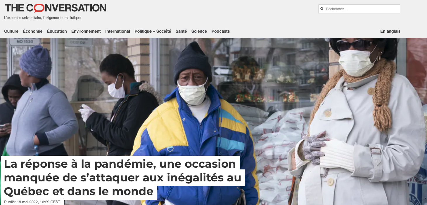 La réponse à la pandémie, une occasion manquée de s’attaquer aux inégalités au Québec et dans le monde