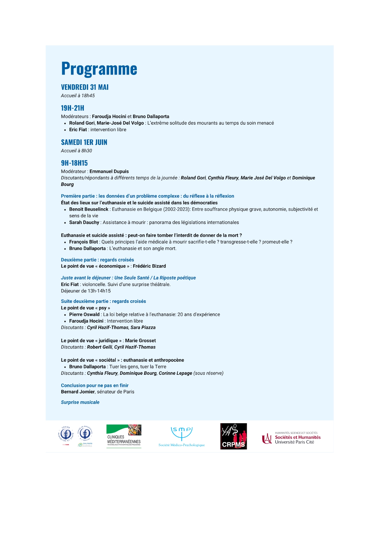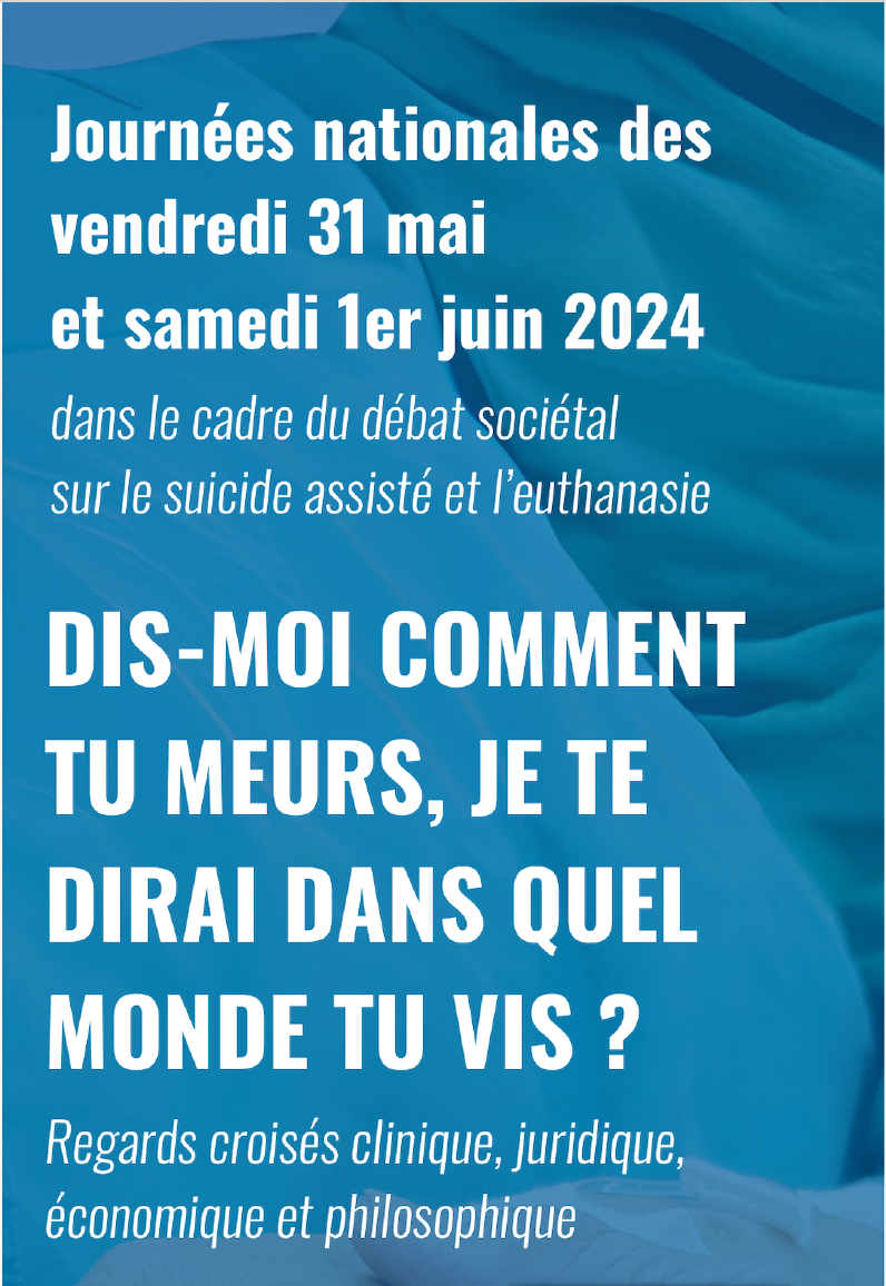 Journées nationales des vendredi 31 mai et samedi 1er juin  2024 – Débat sociétal sur le suicide assisté et l’euthanasie.