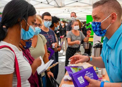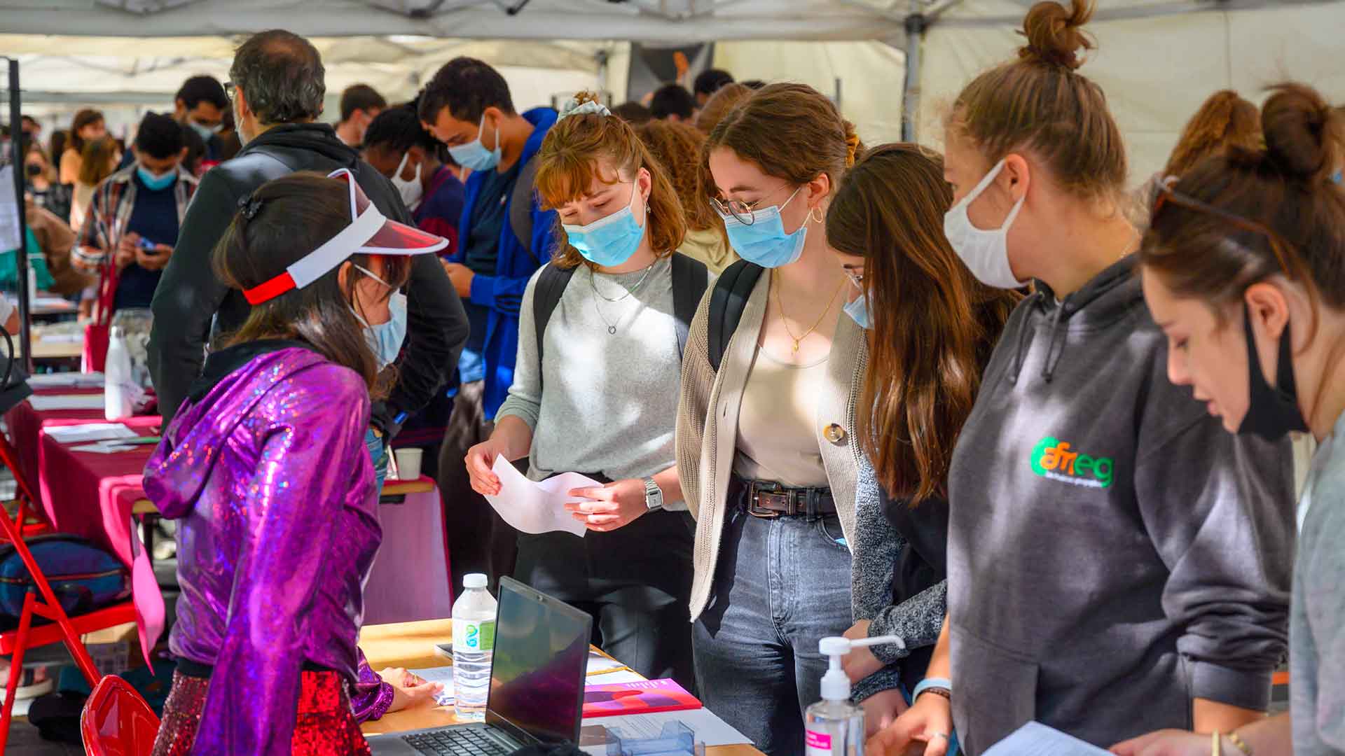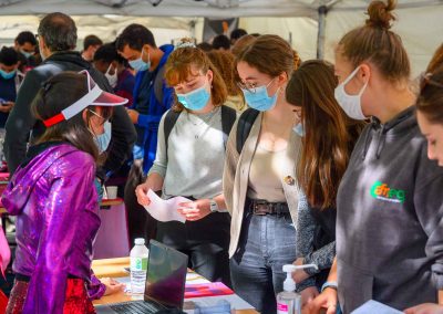 « C’est la première fois depuis 18 mois que l’on peut regrouper la communauté étudiante. C’est vraiment le bonheur de se retrouver, de se croiser, de se rencontrer aussi pour de vrai, car bon nombre d’étudiants ne se sont vus que via des visios, et d’échanger et de partager différemment, autrement qu’autour du pédagogique ». Mireille Fouquet, Vice-Présidente Vie étudiante et vie de Campus.