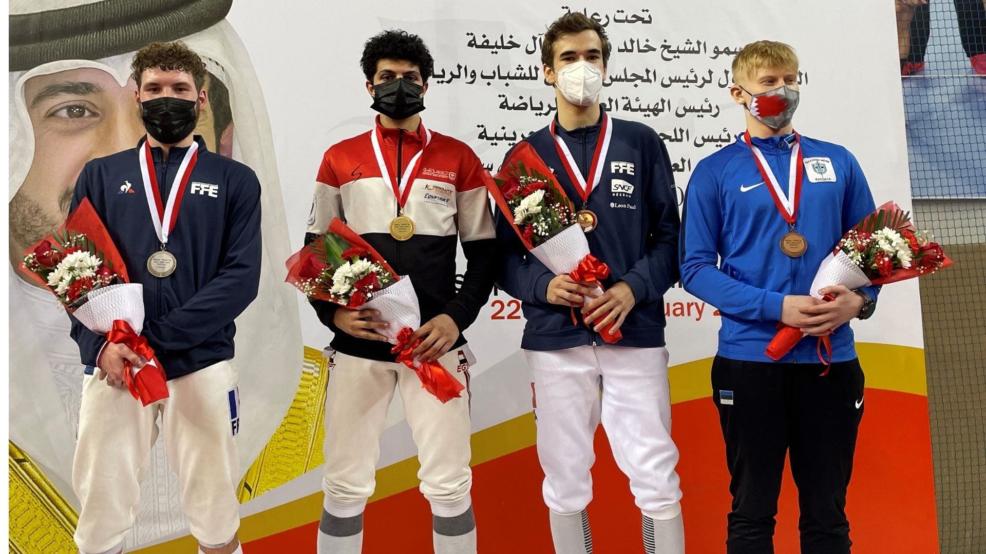 De gauche à droite : Lino Heurlin-Vazquez (France), Mohamed Yasseen (Egypte), Julien Maury et Markus Salm (Estonie).