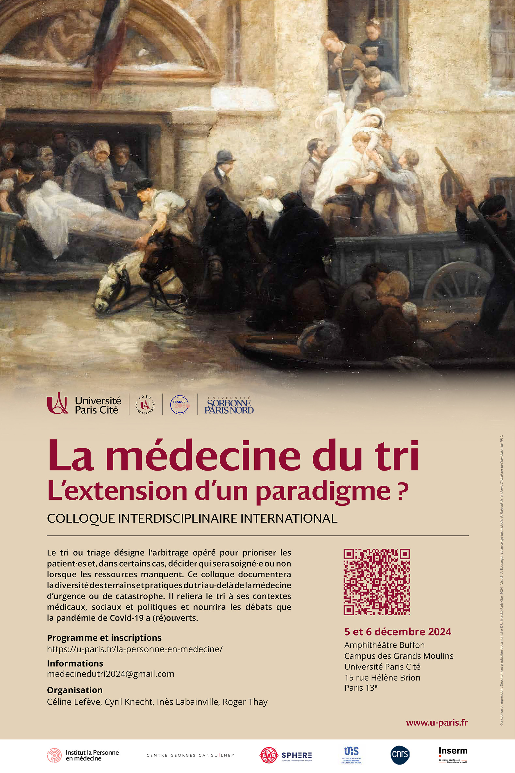 Le tri ou triage en santé, hérité de la médecine de guerre et de catastrophe, désigne l’arbitrage opéré́ afin de prioriser les patient·es, c’est-à-dire décider dans quel ordre ils et elles seront soigné·es et, in fine, le cas échéant, qui sera soigné·e ou non. Si le tri est particulièrement médiatisé́ en situation d’urgence ou de catastrophe où sa pratique est explicite et encadrée – tout en posant des questions éthiques majeures -, il est insuffisamment connu et questionné hors de ces contextes. Sa gestion relève alors davantage de décisions politiques et médicales et de logiques économiques et sociales souvent méconnues des citoyen·nes, des usager·es en santé et même des professionnel·les de santé.Ce colloque vise à documenter la diversité des terrains et des pratiques de priorisation et de tri, à cerner l’extension du paradigme du tri dans la médecine contemporaine, et à relier les opérations de tri à leurs contextes politiques, sociaux et économiques, ainsi qu’aux contraintes qui influencent les valeurs et choix de ses protagonistes. Ce colloque fera enfin un état des lieux des savoirs en SHS sur le triage en médecine, et des débats que la crise sanitaire a permis de (ré́)ouvrir.