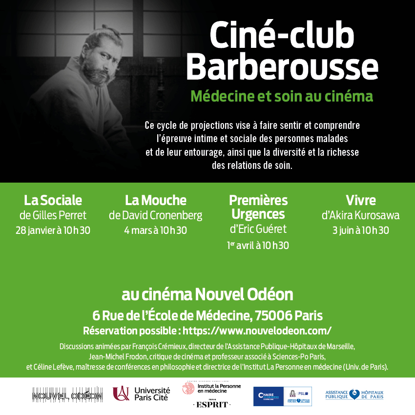 Dès septembre, retrouvez le ciné-club « Barberousse. Médecine et soin au cinéma » un samedi par mois à 10h30 au cinéma Nouvel Odéon, 6 rue de l’Ecole de médecine, Paris 6ème. Ciné-club « Barberousse. Médecine et soin au cinéma »: second semestre 2024....