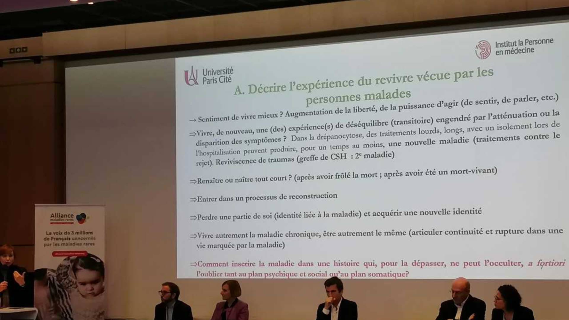 Pour le volet drépanocytose, une première matinée de réunion participative et interdisciplinaire a été organisée le 7 juillet 2023, réunissant des patients greffés, des professionnels de santé et 7 chercheurs de l’équipe (anthropologie, psychologie clinique et philosophie du soin). Cette réunion avait pour objectif de présenter, discuter et valider les thématiques émergées de l’analyse des premiers entretiens qualitatifs réalisés avec les patients.Pour le volet mucoviscidose, une première réunion interdisciplinaire et participative avec les patients ayant participé à l’étude a ét é organisée le 15 mars 2024, à 14h00 à l’ILPEM et en ligne. Elle a permis de discuter et valider des thématiques et des pistes de réflexion dégagés par l’analyse qualitative des entretiens patients