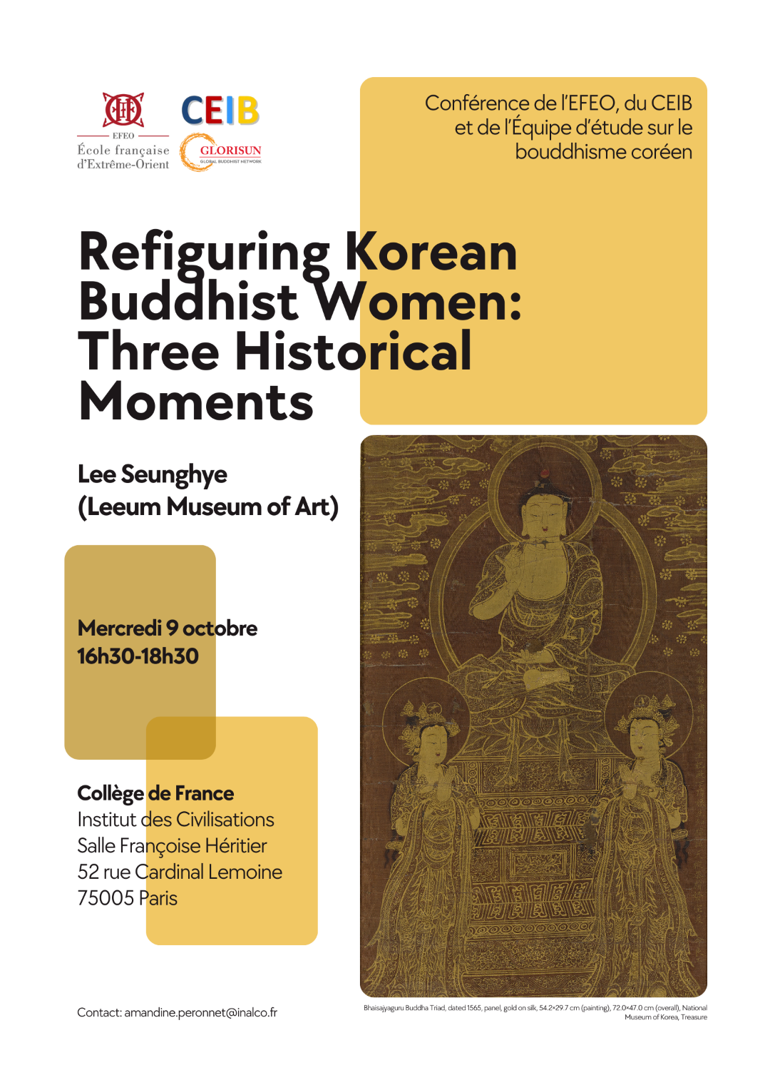 À l’occasion de son passage à Paris, Mme LEE Seunghye, conservatrice du musée des Arts LEEUM 리움미술관 de Séoul, donnera une conférence sur le bouddhisme coréen intitulée :