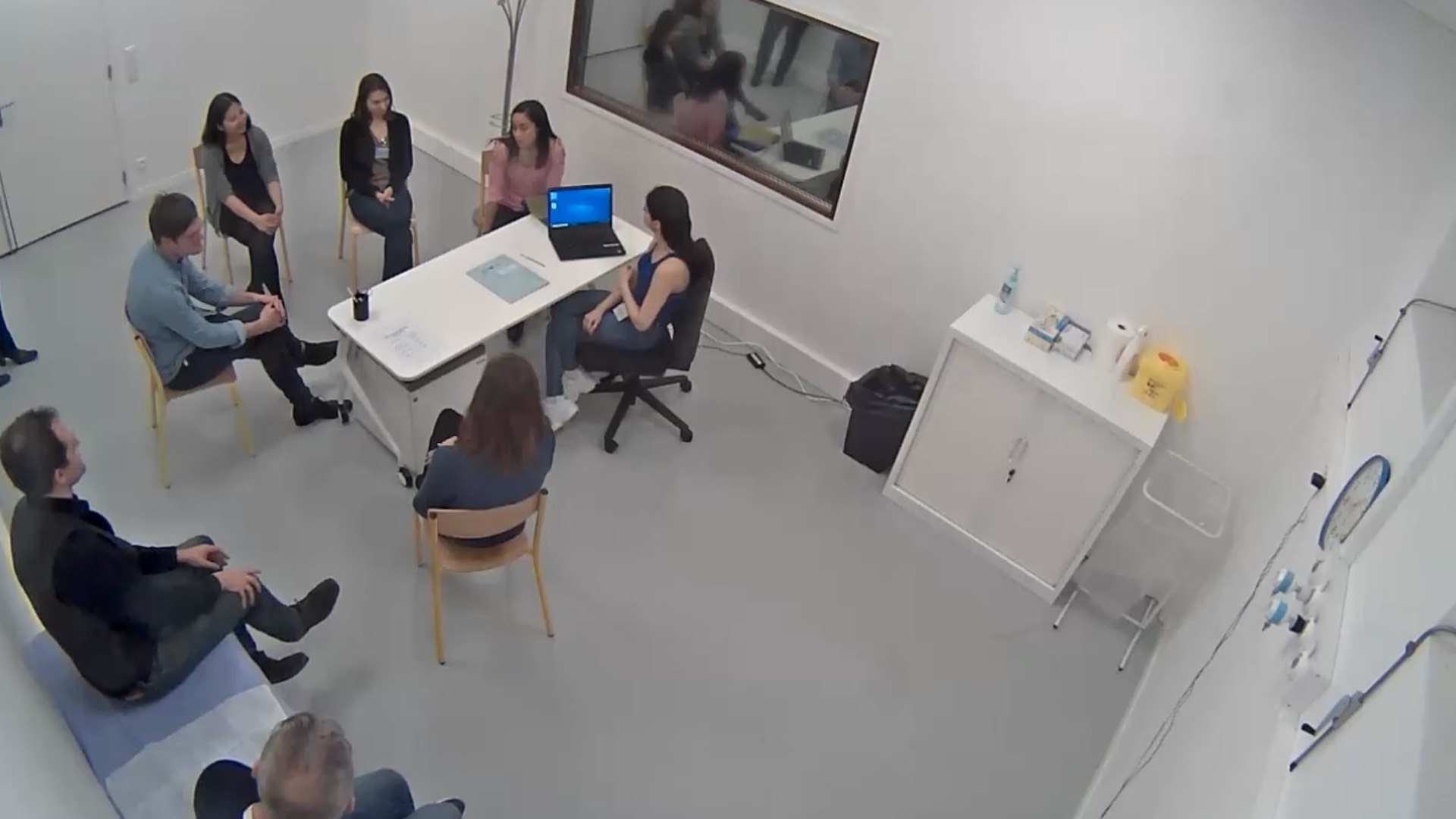 Au cours de cet atelier, les étudiants réalisent trois entretiens avec des patients standardisés présentant des pathologies psychiatriques typiques (épisode dépressif caractérisé, trouble obsessionnel compulsif, épisode maniaque avec caractéristiques psychotiques). Chaque étudiant mène un entretien et observe les deux autres entretiens derrière une vitre sans tain. Chaque entretien est suivi d’un débriefing mené par un superviseur en présence du patient standardisé et de tous les étudiants du groupe. Avant et après l’atelier, les étudiants complètent un questionnaire concernant leur difficulté et leur capacité perçues à interroger les patients sur leurs idées suicidaires.