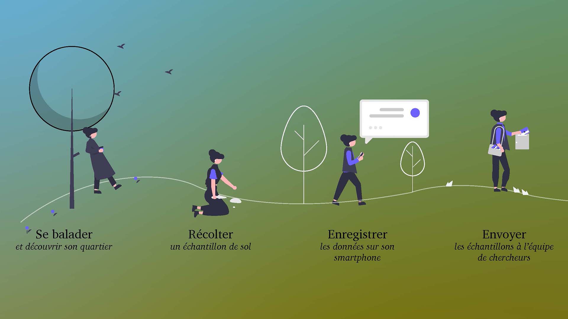 C’est dans cette perspective que les chercheurs du laboratoire Évolution et Ingénierie des Systèmes Dynamiques au Learning Planet Institute invitent les citoyens et citoyennes à rejoindre, tout l’été, le programme de recherche participative Science à la Pelle. Leur contribution, bien que déterminante pour la réussite de ce projet de recherche, est simple. Durant leurs randonnées estivales, les participants sont invités à prélever une cuillère à soupe de terre du lieu de promenade, à envoyer l’échantillon aux chercheurs et à renseigner sur l’application disponible sur le site web du projet, les coordonnées et une photo du lieu de prélèvement.