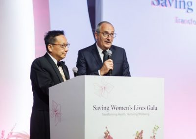 Le Saving Women’s Lives Gala, tenu le samedi 11 mai au Shangri-La Singapour, a réuni de nombreux acteurs de secteurs divers – recherche, médecine, arts, médias, mode, industrie – tous engagés pour la santé des femmes en France et à Singapour. L’objectif est de favoriser les rencontres et les collaborations entre les deux pays dans ce domaine. L’invitée d’honneur, S.E. Minh Di Tang, ambassadrice de France à Singapour, a ouvert la soirée, accompagnée des professeurs Zhang Cuilin, directrice de GloW NUS, Vassilis Tsatsaris, directeur de l’Institut Santé des Femmes, Matthieu Resche-Rigon, doyen de la faculté de Santé d’université Paris Cité, Chong Yap-Seng, doyen de NUS Medicine, Edouard Kaminski, président d’université Paris Cité, Antoine Kouchner, vice-président des relations internationales et Amira Ghouaibi, directrice de la Global Alliance for Women’s Health au World Economic Forum. Leur message est clair: les coopérations scientifiques sont nécessaires pour répondre, entre autres, au défaut de diagnostic des maladies cardiaques chez les femmes, aux cancers féminins ou à la sous-représentation des femmes asiatiques dans les travaux de recherche scientifiques mondiaux.