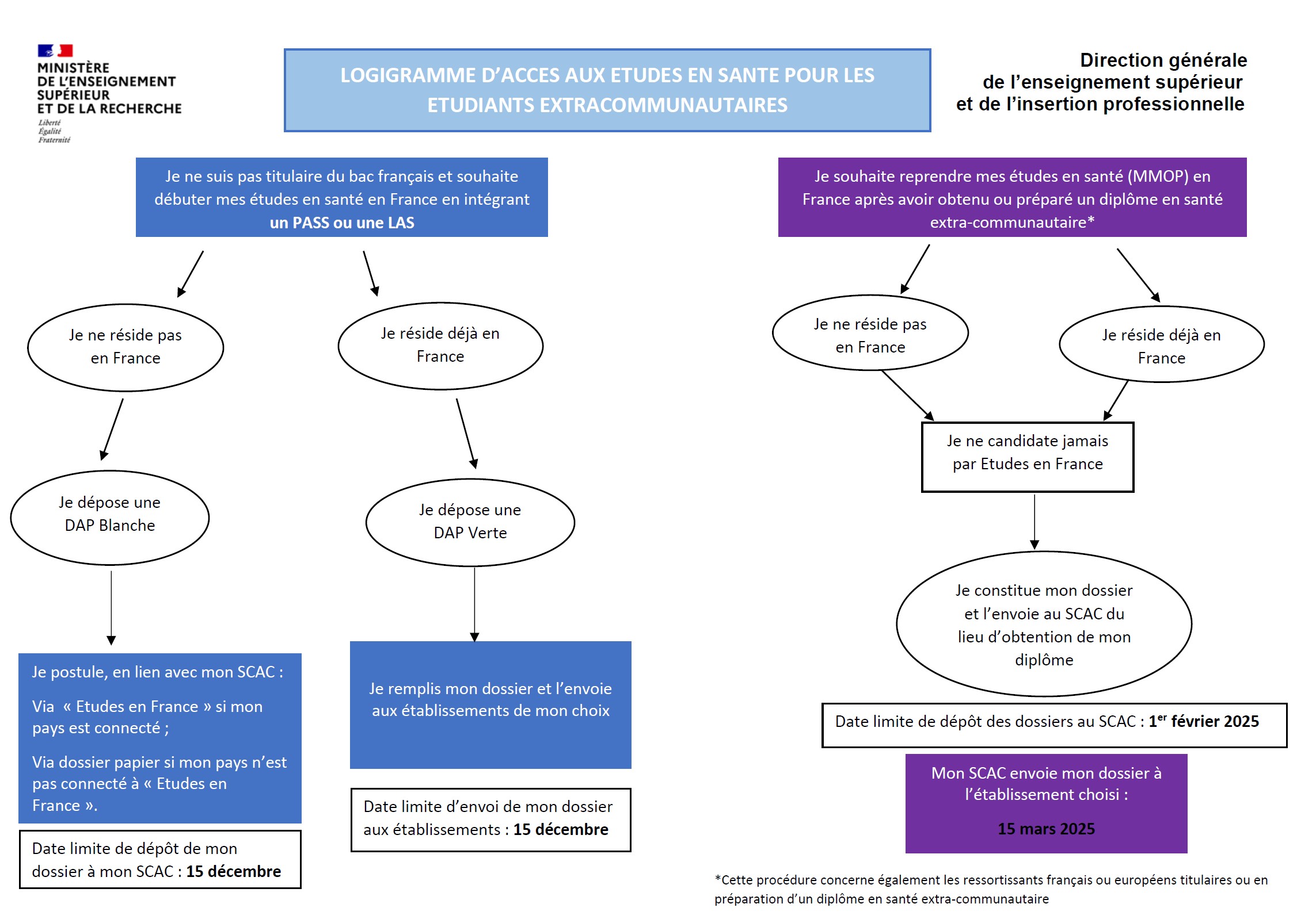 Cette page s’adresse aux étudiants (quelle que soit leur nationalité) en cours de formation dans une des filières de santé et aux professionnels de santé Médecine, Maïeutique, Odontologie, Pharmacie, diplômés et qui souhaitent présenter une candidature pour accéder au 1e ou 2e cycle des études en santé.