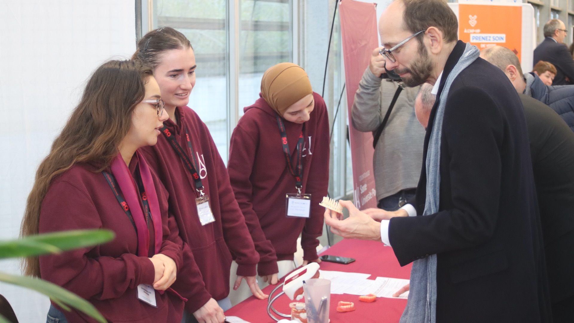 Côté organisation, l’université Paris Cité a aligné neuf stands, dont cinq en santé. Étaient présents la Maïeutique, la Médecine, l’Odontologie, la Pharmacie et la Rééducation-réadaptation, avec des espaces dédiés à l’orthoptie, à la pédicure-podologie, à l’audioprothèsie et à la masso-kinésithérapie. Les étudiantes et étudiants volontaires pour animer ces stands, mais aussi pour assurer l’orientation des publics et l’animation du forum, ont fait preuve de beaucoup d’engagement, répondant avec constance aux questions des nombreux publics jusqu’à la fin de l’après-midi du samedi. Les enseignantes-chercheuses et les enseignants-chercheurs des filières de santé ont également répondu présent, assurant des conférences tout au long du forum, et tenant les stands avec les étudiantes et les étudiants.