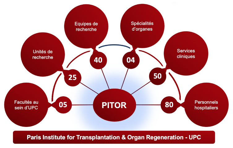 L’institut Hors Murs « Paris Institute for Transplantation & Organ Regeneration » (PITOR) a été créé. Orienté vers le domaine de la transplantation et de la régénération d’organes, il a pour vocation d’intensifier les collaborations et formations entre les équipes de recherche et les équipes cliniques afin de favoriser l’interdisciplinarité en portant des projets ambitieux. Il est placé sous la co-direction du Pr Alexandre Loupy et du Pr Catherine Chaussain.