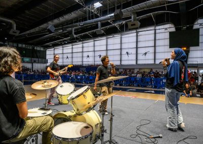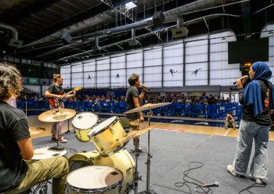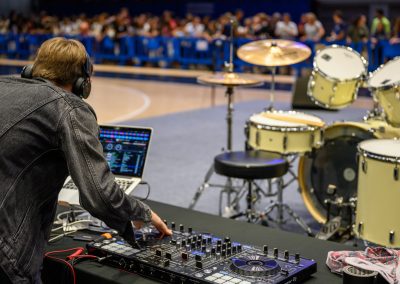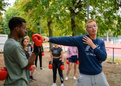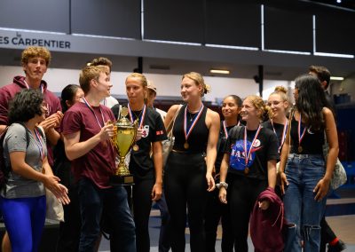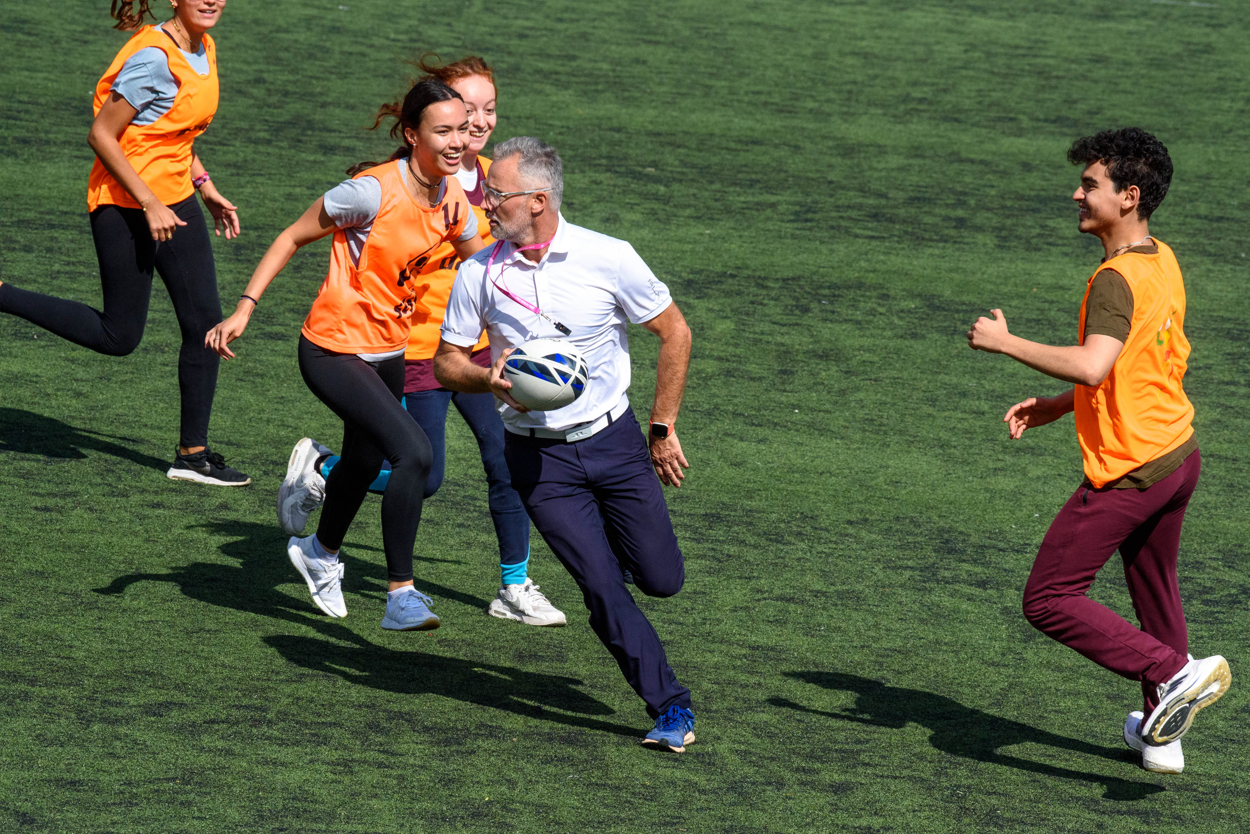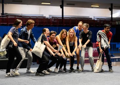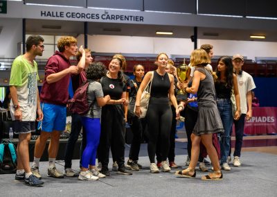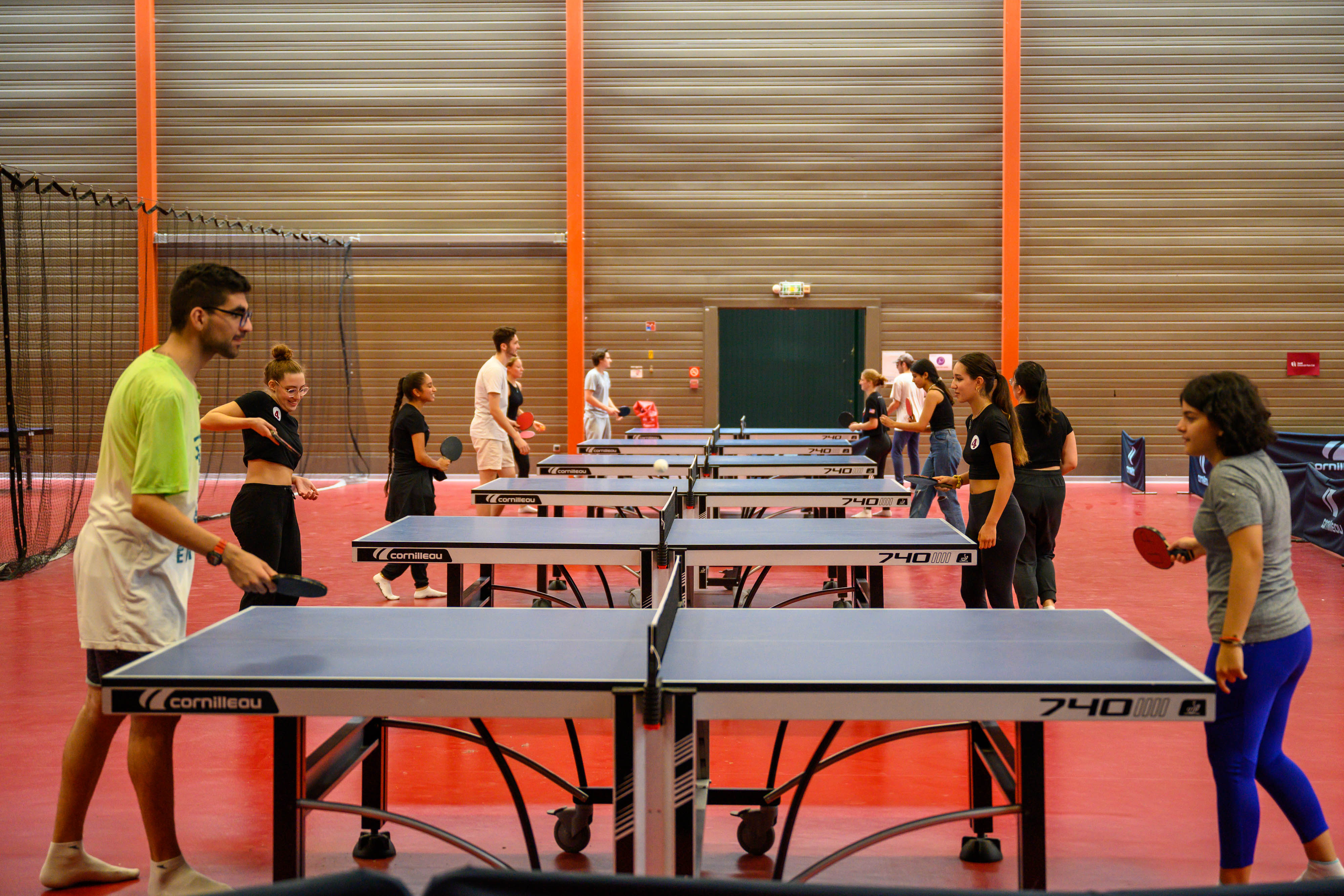 Grâce aux enseignantes et enseignants du Service des Sports, chacune des 32 équipes participantes a pu tester 3 sports parmi les 16 proposés. Les équipes ont également participé à des challenges pour tenter de remporter la coupe ! L’après-midi a aussi été ponctuée de concerts, de danse et d’animations proposés par les étudiantes et étudiants des années supérieures.