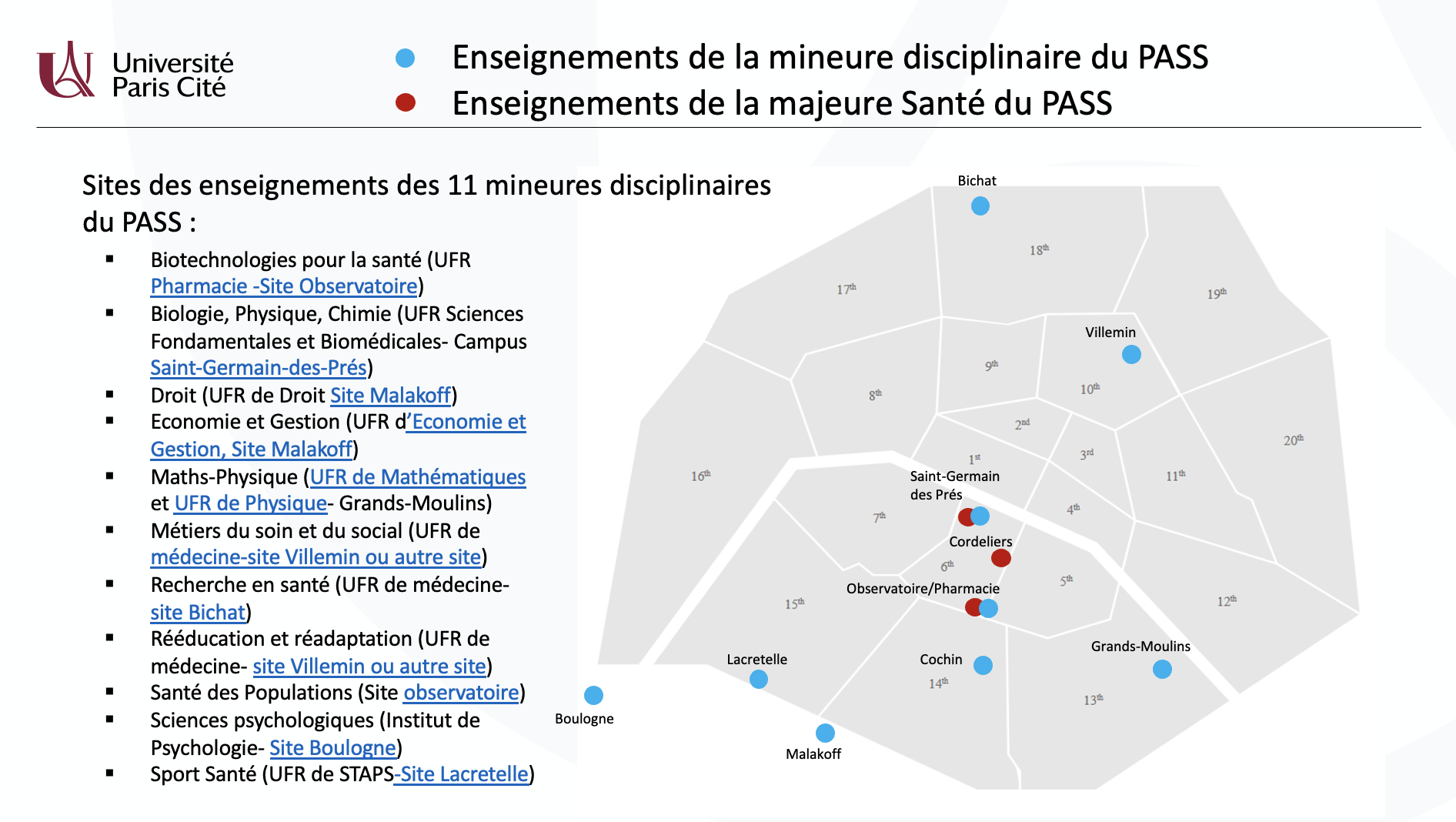 Lieux d'enseignements du PASS