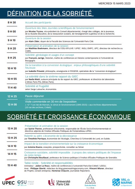 34ème JOURNÉES SCIENTIFIQUES DE L’ENVIRONNEMENT : LA SOBRIÉTÉ DANS TOUS SES ÉTATS : DÉFINIR, COMPRENDRE, AGIR