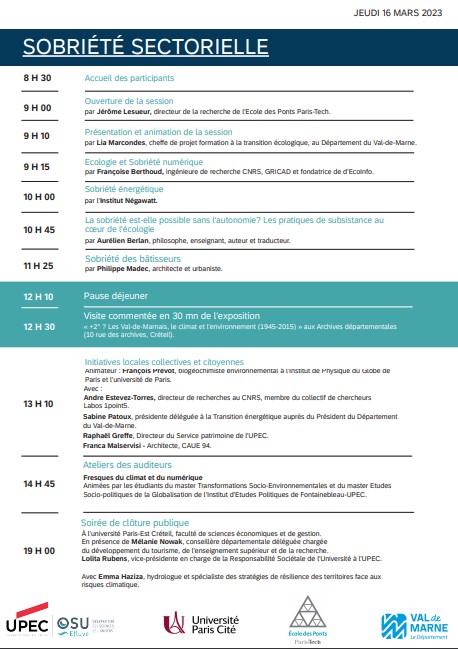 - Conférences du 15 et 16 mars : par mail à osu@u-pec.fr
