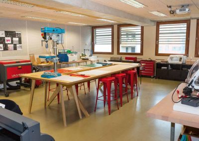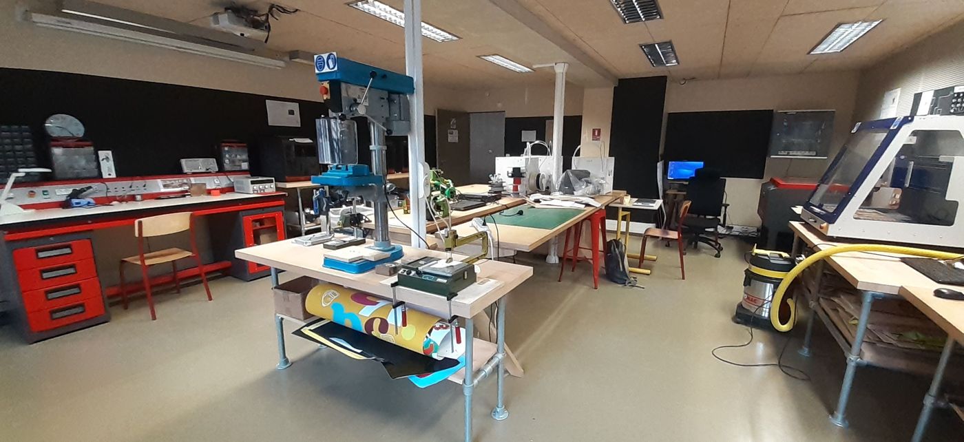 Une table connectée et un vidéoprojecteur sont disponibles dans l’espace de travail. L’atelier est équipé d’une paillasse électronique, d’imprimantes 3D, d’une découpeuse vinyle, d’une découpeuse laser, d’une fraiseuse numérique, d’une brodeuse numérique, etc.