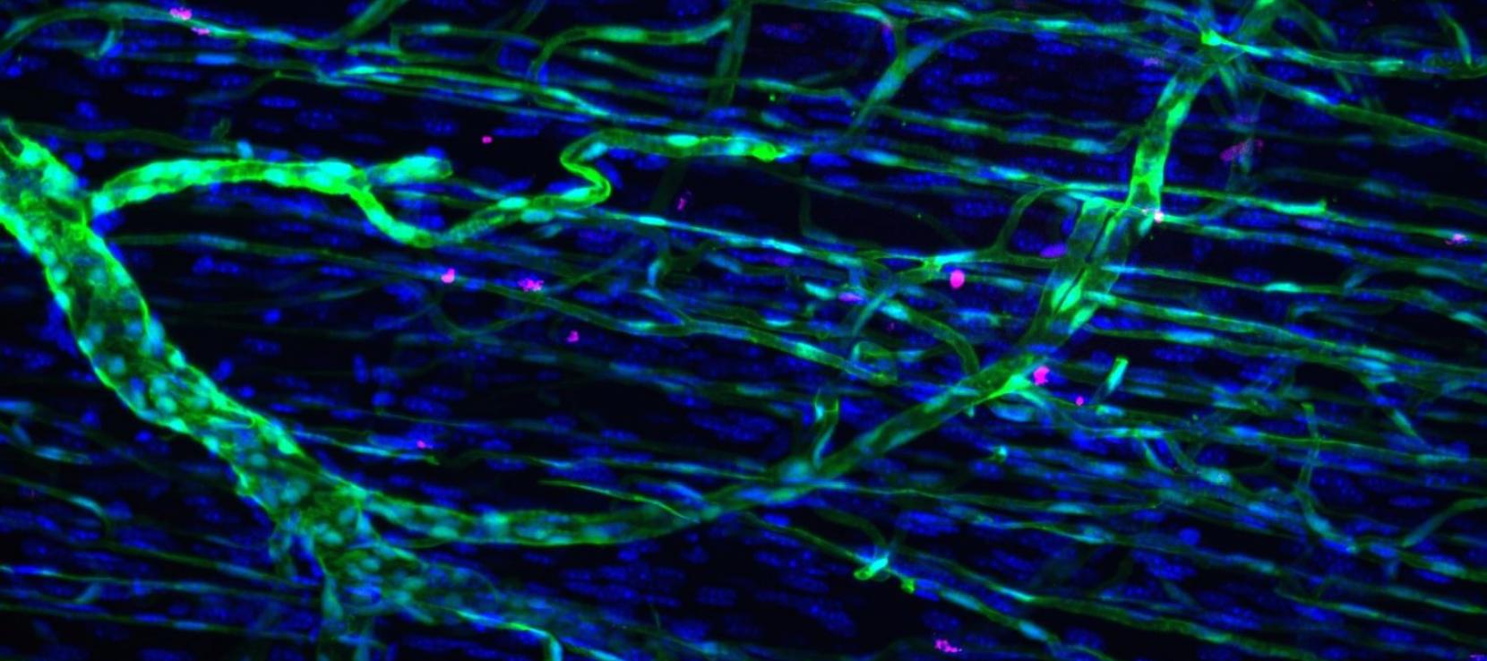 Légende de l’image : visualisation d’un muscle de souris adulte par microscopie confocale