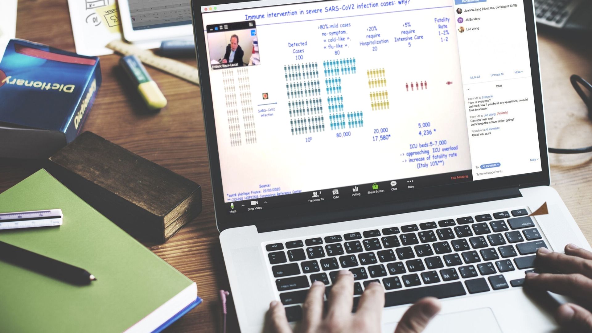 Le projet a donc été repensé par les équipes pédagogiques et les étudiants en tenant compte des contraintes de confinement, une réflexion poussée jusqu’au choix de nouvelles thématiques en lien avec l’actualité. La conférence sur l’effet de l’immunité sur les cas sévères de Covid-19 a, de ce fait, remporté un vif succès : 95 participants dont 72 étudiants et 12 chercheurs étaient au rendez-vous.