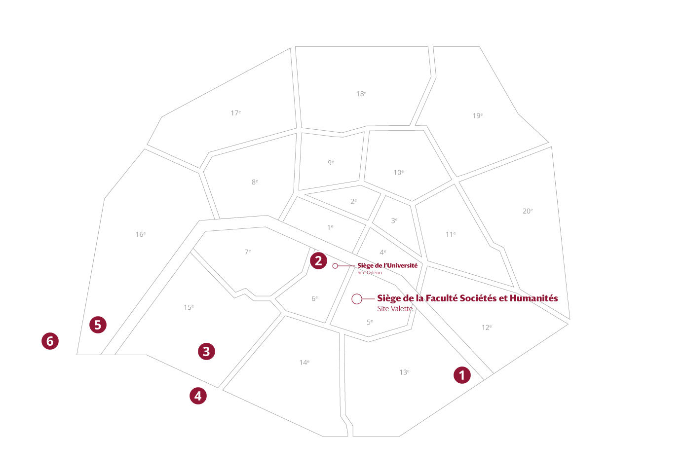The headquarters of the Faculty of Humanities and Social Sciences is located at 2 rue Valette, in the 5th arrondissement of Paris.