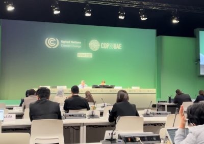 La 28e Conférence des Parties sur les changements climatiques (COP 28) a lieu à Dubaï du 30 novembre en 23 décembre 2023. Cette conférence internationale réunit les pays signataires de la Convention Cadre des Nations Unies sur les Changements Climatiques ainsi que les acteurs et actrices du climat.