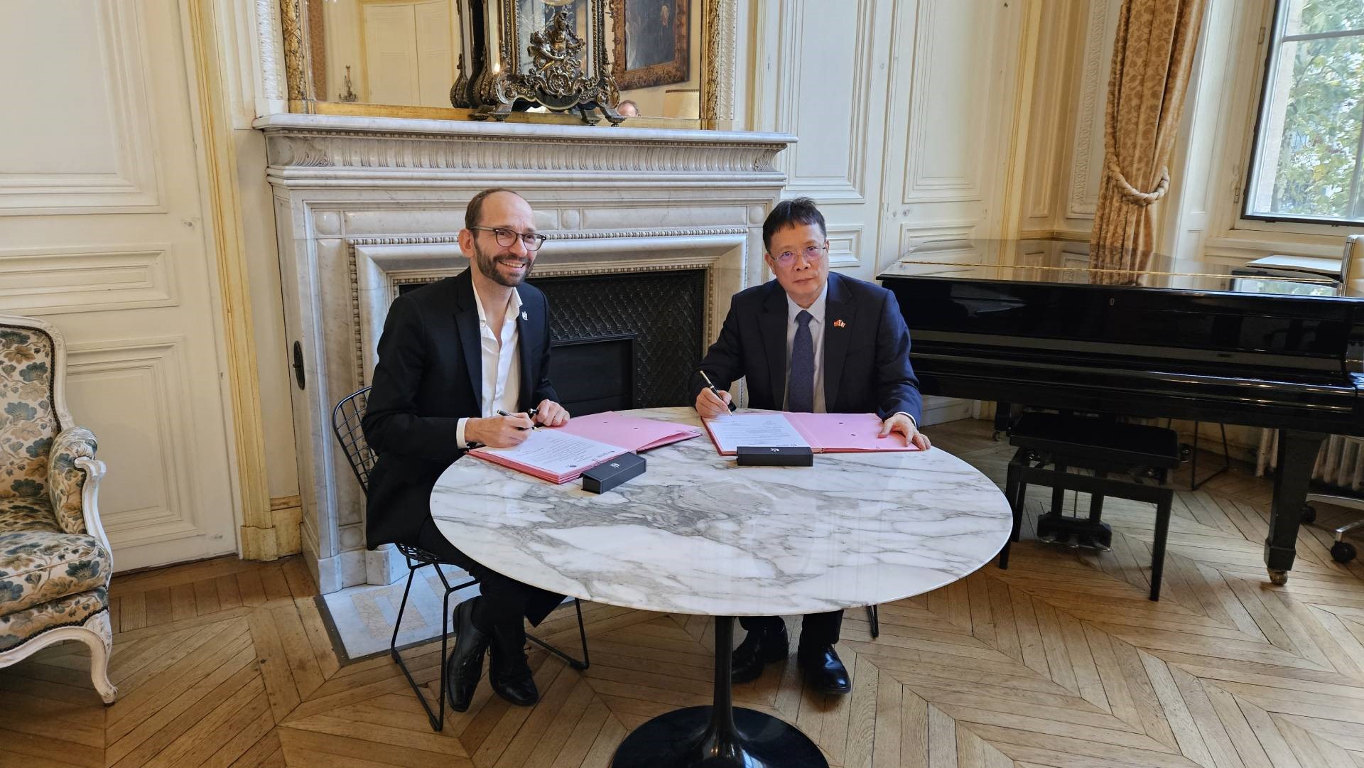 (de gauche à droite) le Président de l’université Paris Cité, Édouard Kaminski et le Professeur Chau Van Minh, Président de la VAST