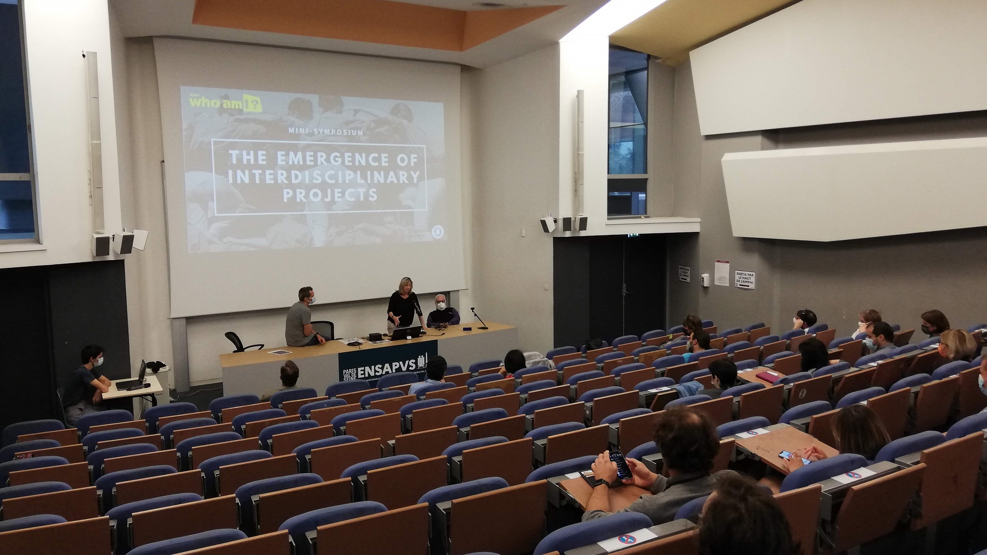 Photo taken on Wednesday, July 7 in auditorium 310 of the Val de Seine School of Architecture (ENSA). Claire Rougeulle, Benoit Ladoux and François Villa introduce the half-day of presentations.